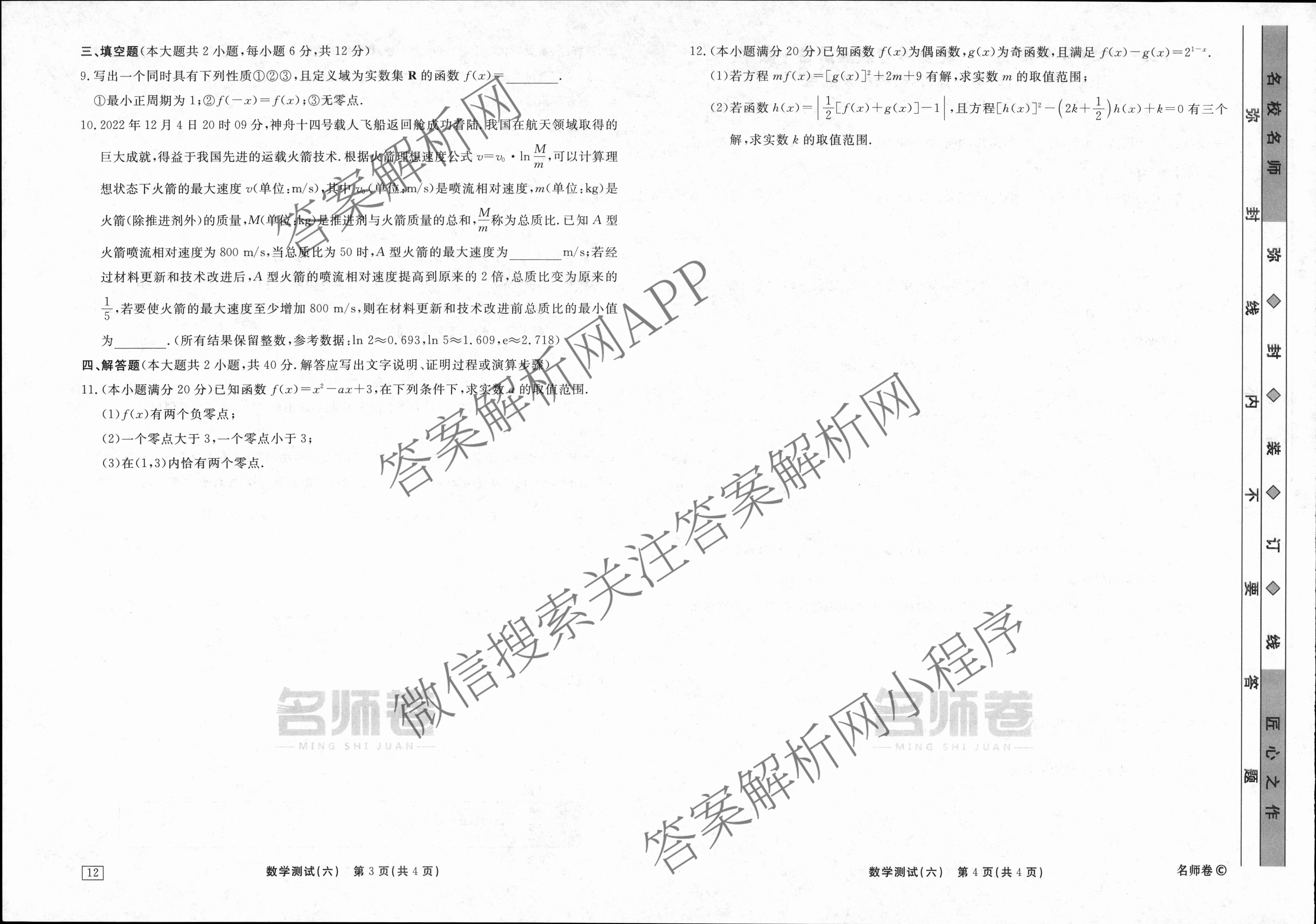 衡水名师卷2023-2024学年度高三一轮复习考点测试卷数学(40分钟实心菱形)(六)6试题
