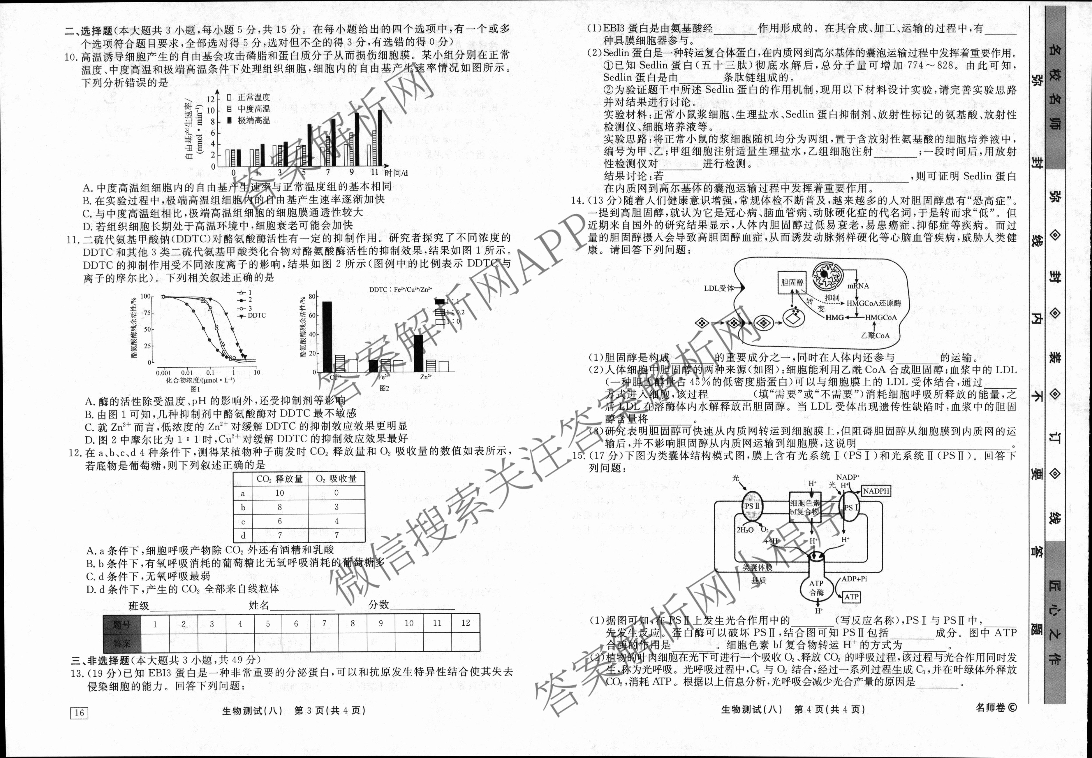 衡水名师卷2023-2024学年度高三一轮复习考点测试卷生物(40分钟双菱形)(八)8试题