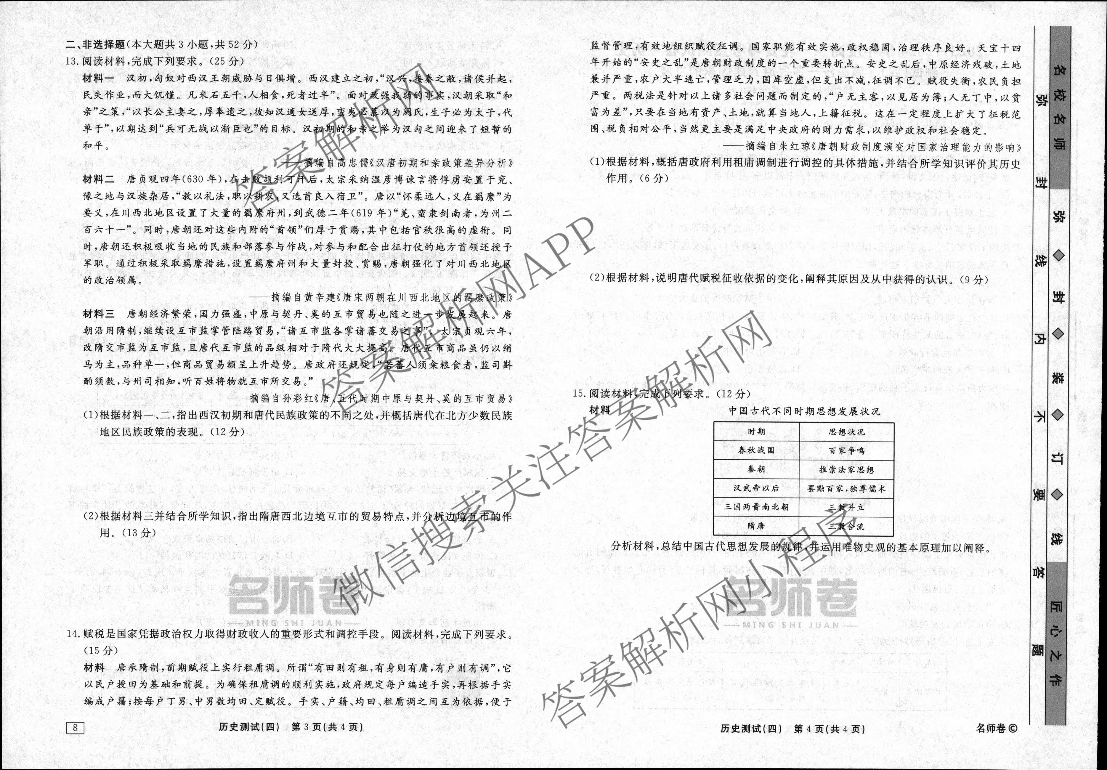 衡水名师卷2023-2024学年度高三一轮复习考点测试卷历史(40分钟实心菱形)(四)4试题