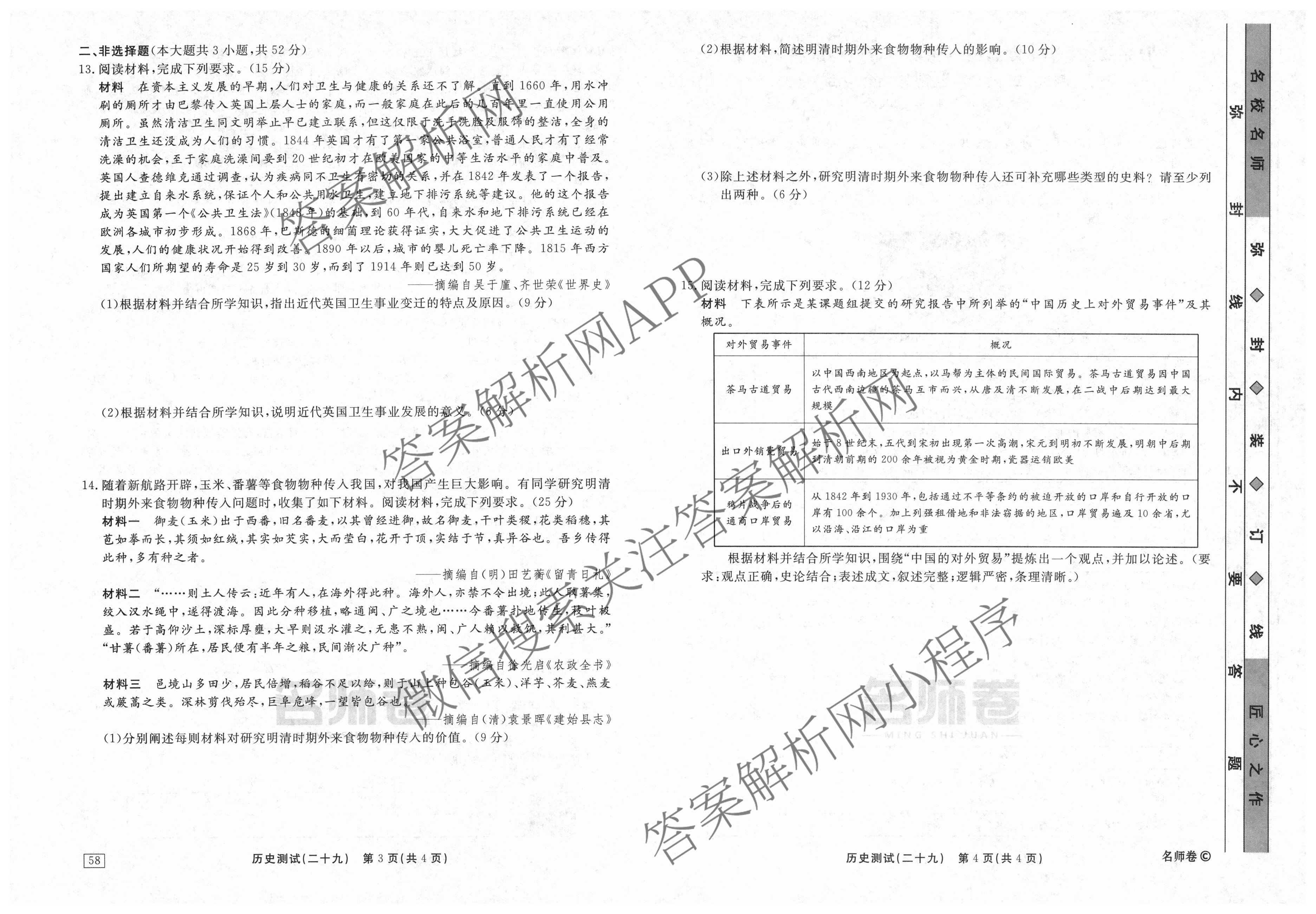 衡水名师卷2023-2024学年度高三一轮复习考点测试卷历史(40分钟实心菱形)(二十九)29试题