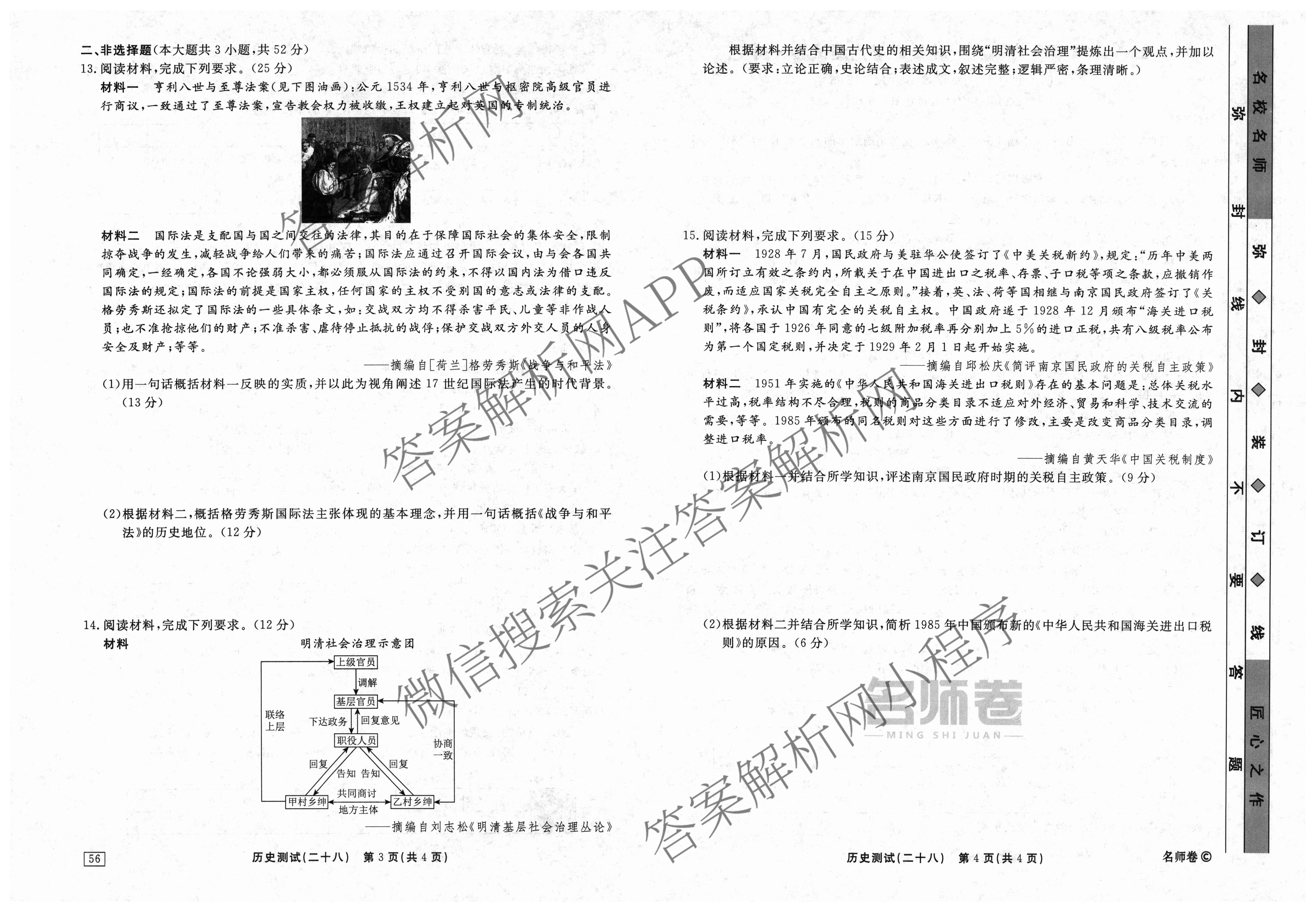 衡水名师卷2023-2024学年度高三一轮复习考点测试卷历史(40分钟实心菱形)(二十八)28试题