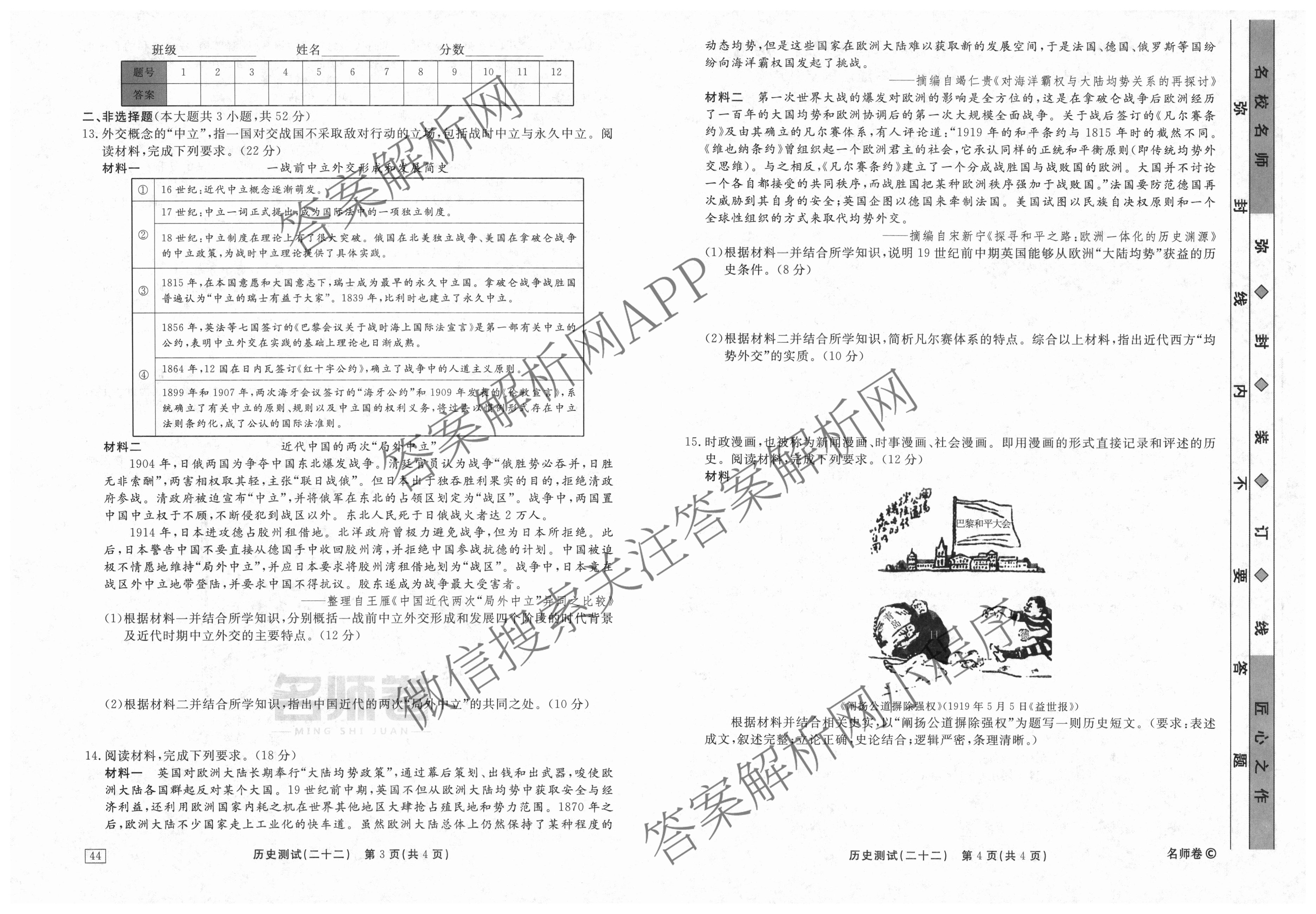 衡水名师卷2023-2024学年度高三一轮复习考点测试卷历史(40分钟实心菱形)(二十二)22试题