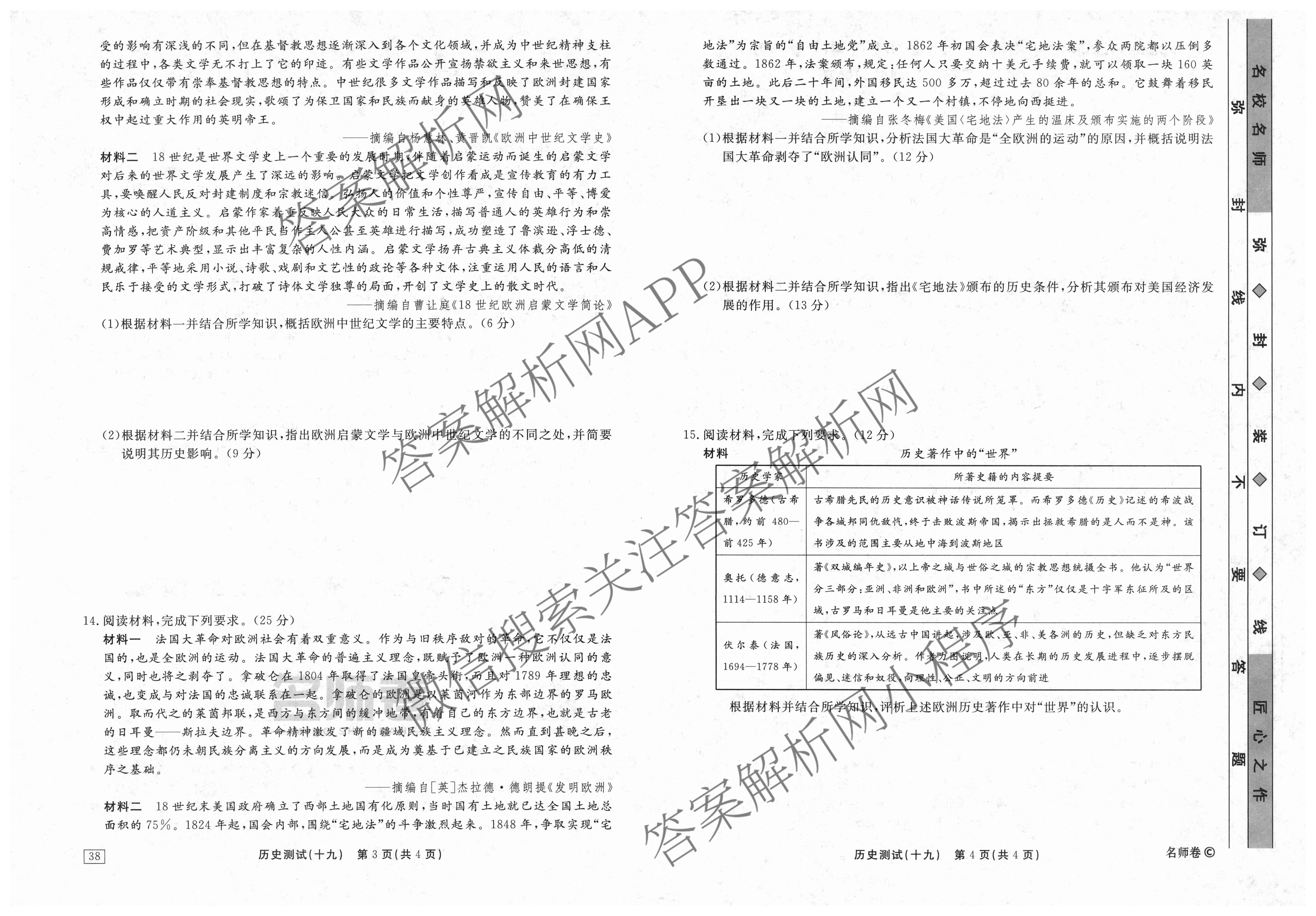 衡水名师卷2023-2024学年度高三一轮复习考点测试卷历史(40分钟实心菱形)(十九)19试题