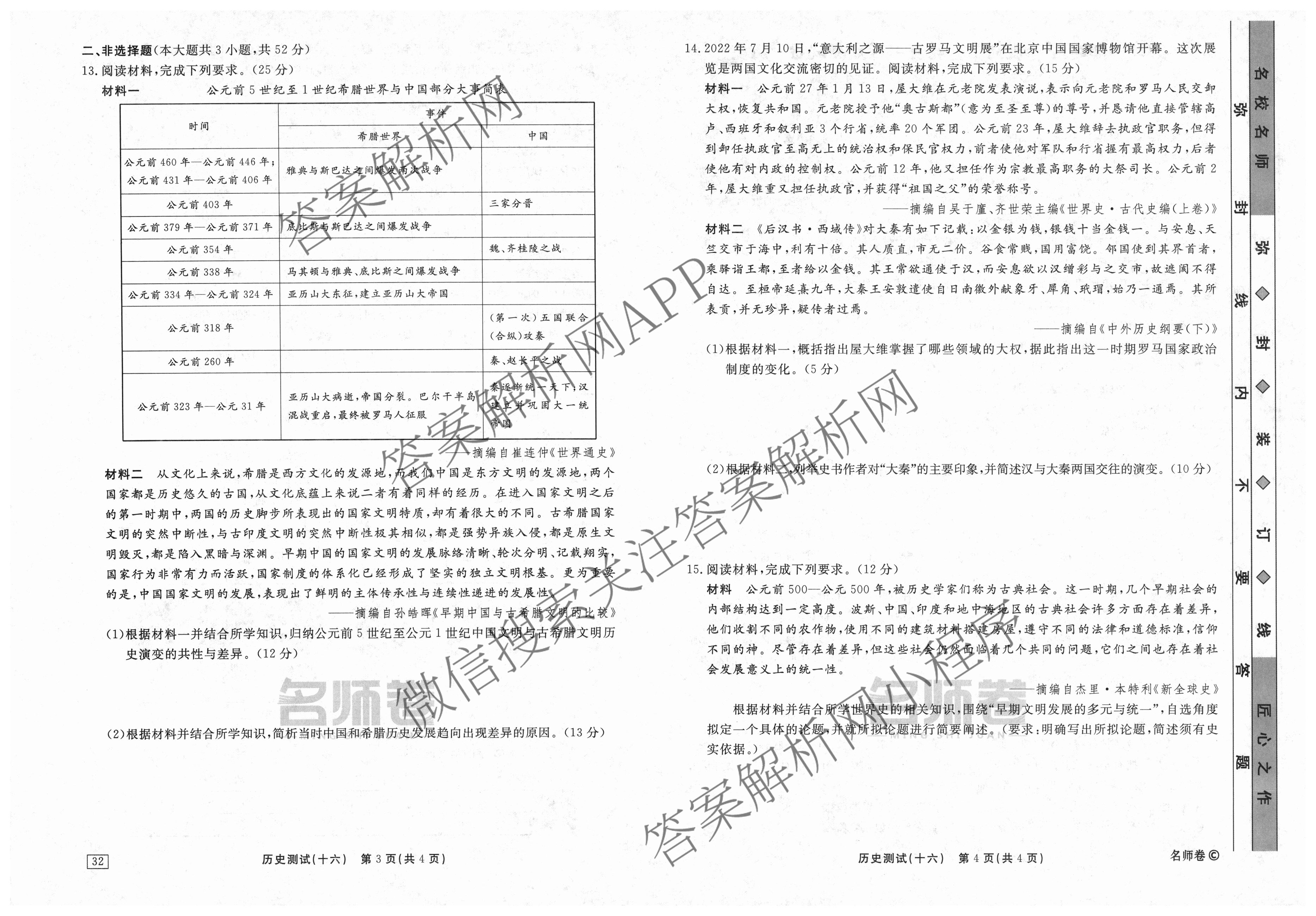 衡水名师卷2023-2024学年度高三一轮复习考点测试卷历史(40分钟实心菱形)(十六)16试题