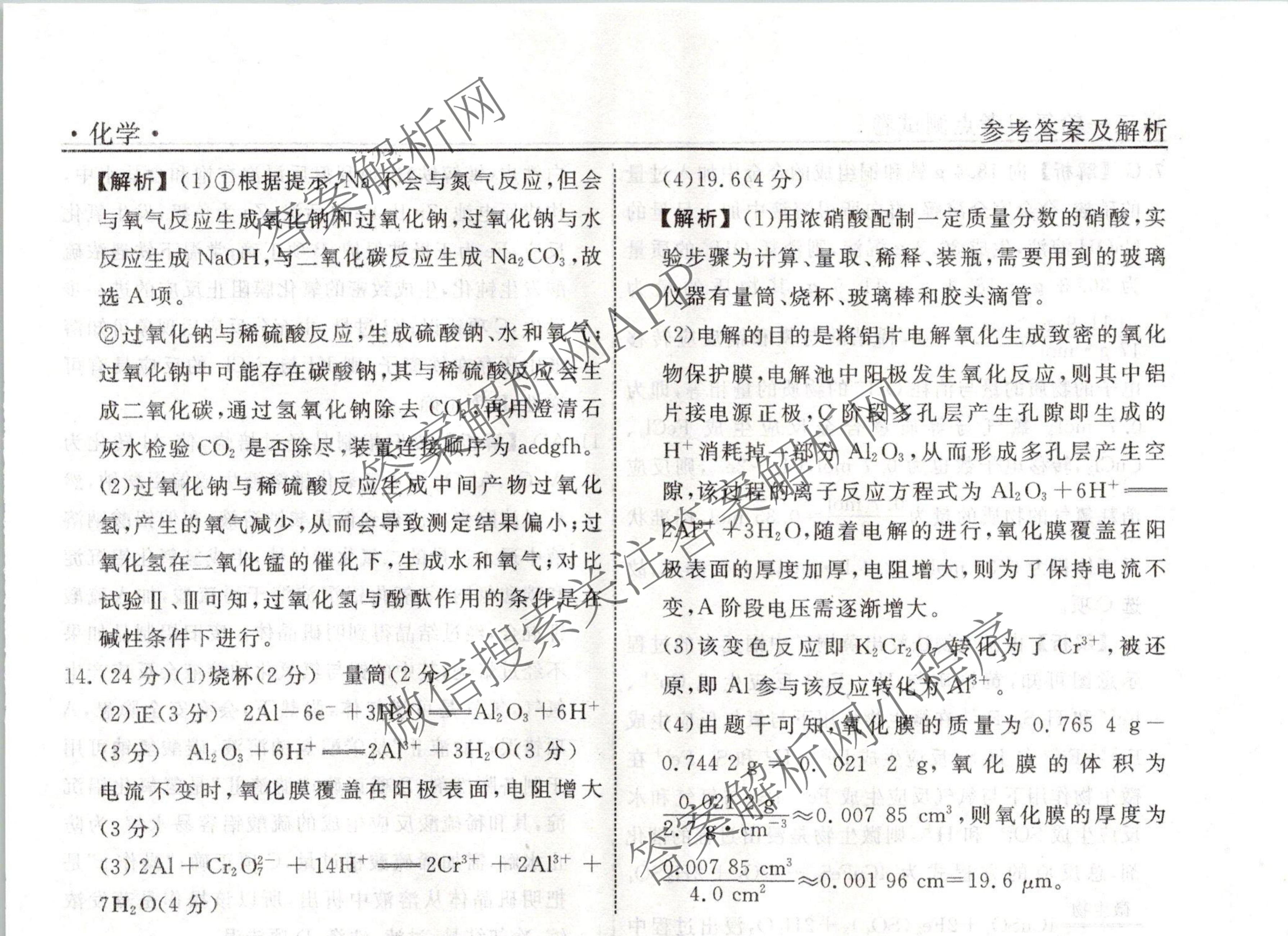 衡水名师卷2023-2024学年度高三一轮复习考点测试卷化学(40分钟双菱形)(四)4答案