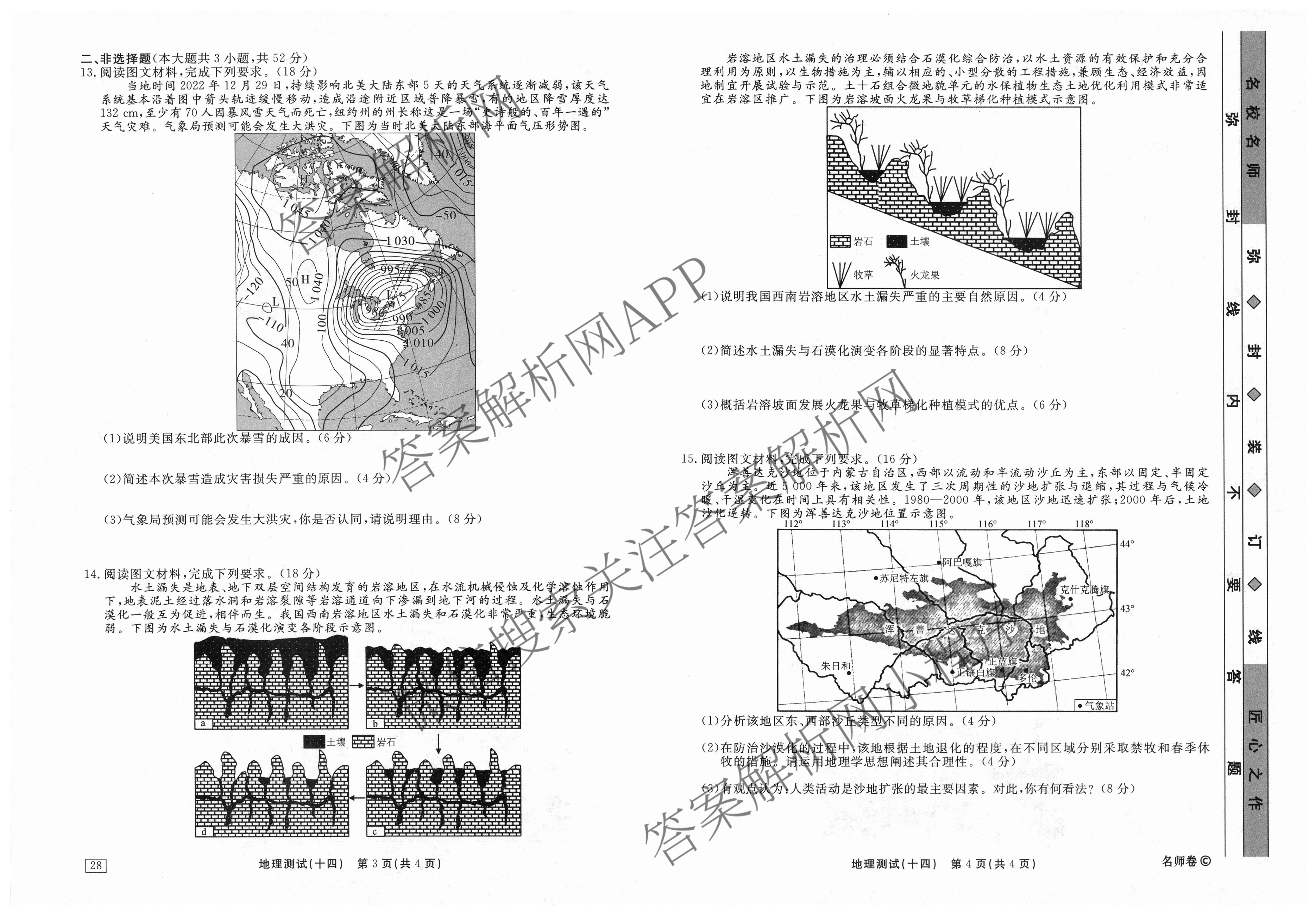 衡水名师卷2023-2024学年度高三一轮复习考点测试卷地理(40分钟实心菱形)(十四)14试题