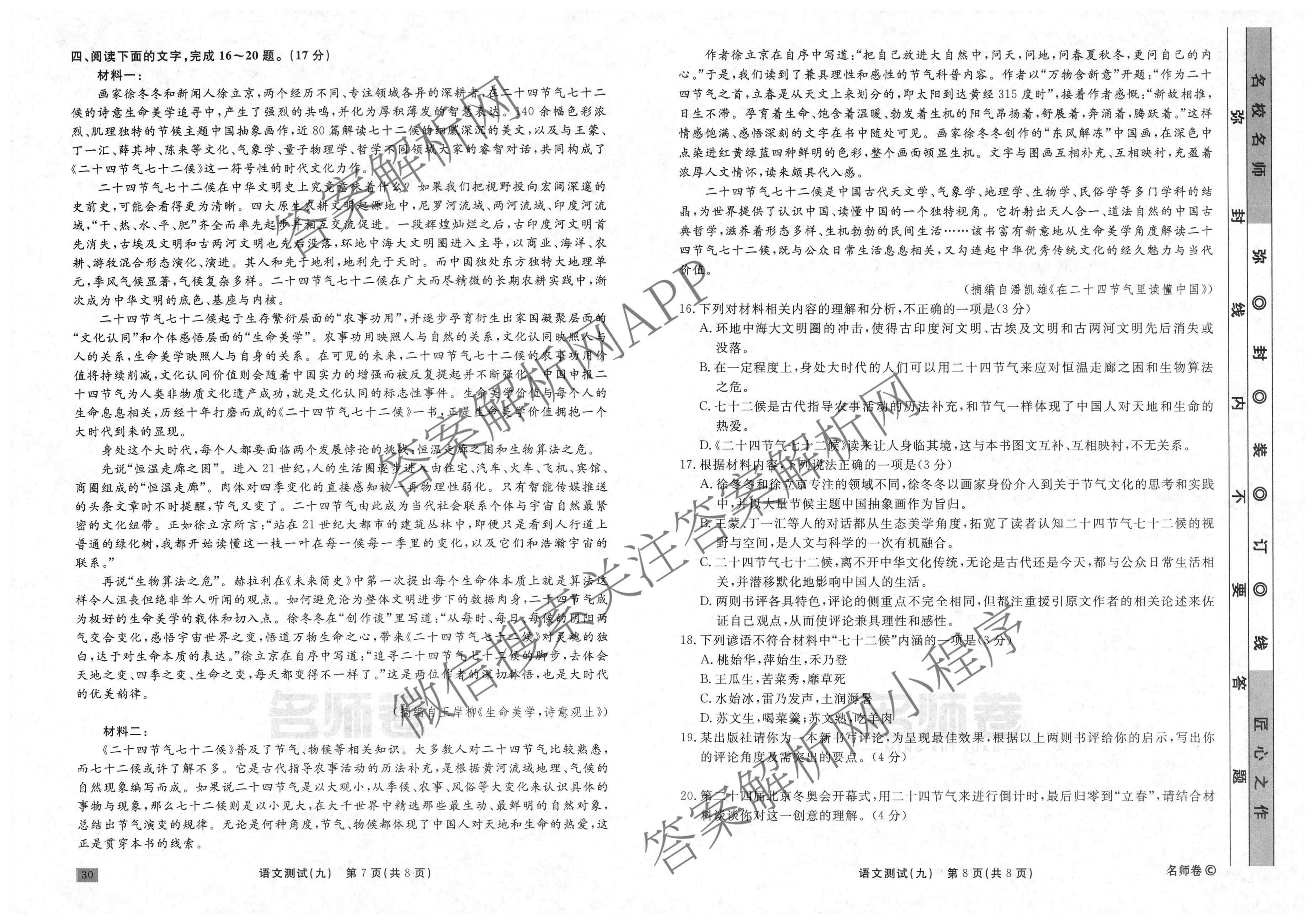 衡水名师卷·2023-2024学年度高三一轮复习考点测试卷·语文(120分钟·同心圆)(九)9试题,目前分科卷答案网已经汇总了衡水名师卷·2023-2024学年度高三一轮复习考点测试卷·语文(120分钟·同心圆)(九)9试题的各科答案和试卷,获取更多衡水名师卷答案解析,请在关注本站。