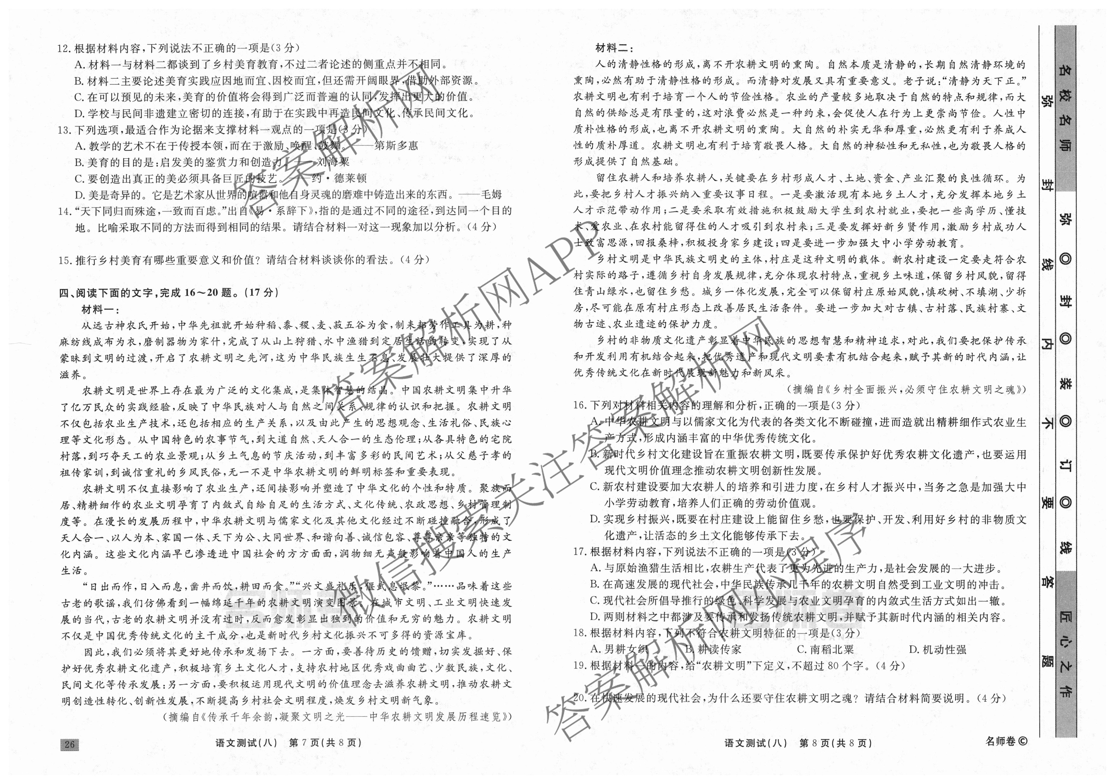 衡水名师卷2023-2024学年度高三一轮复习考点测试卷语文(120分钟同心圆)(八)8试题