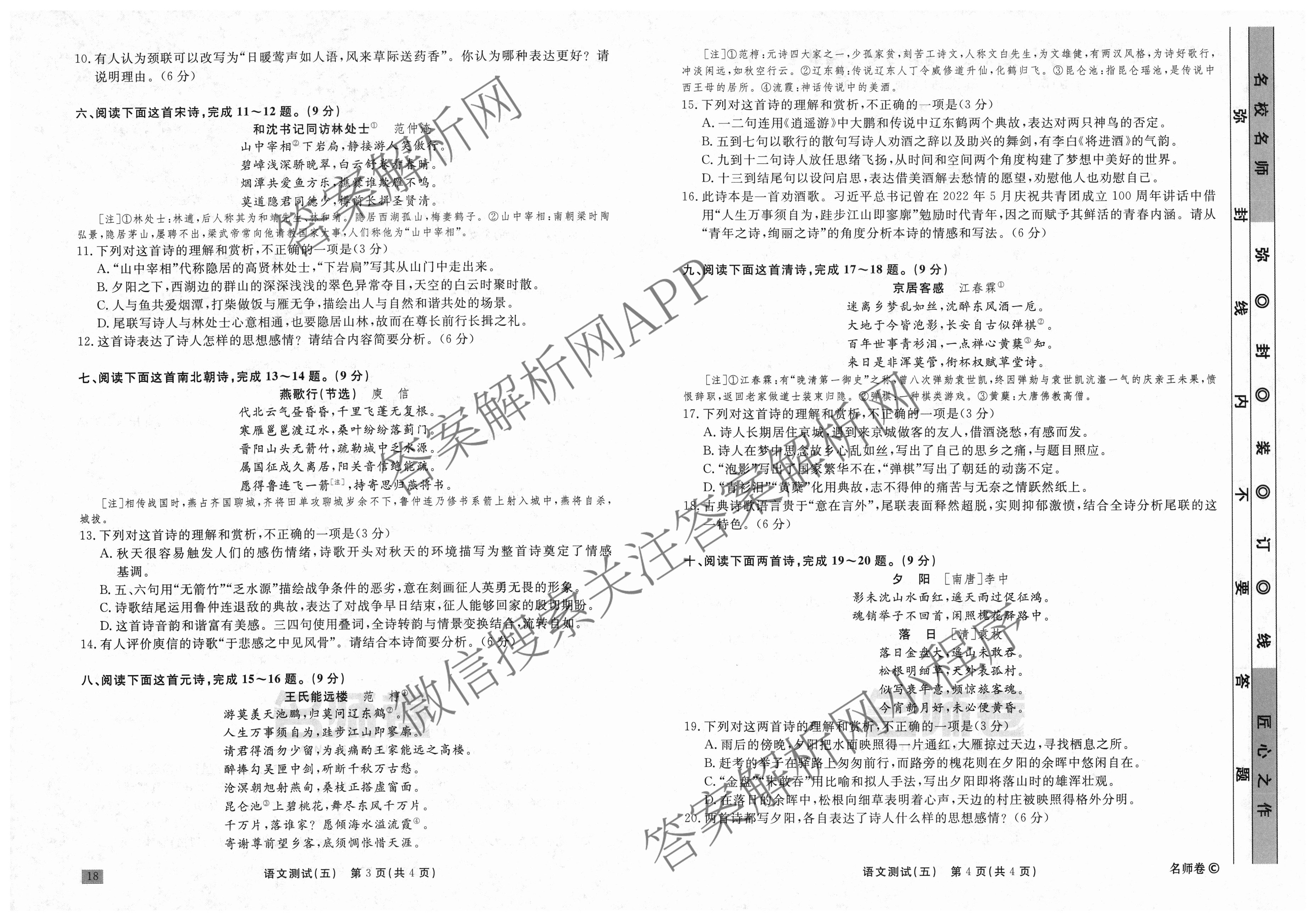 衡水名师卷·2023-2024学年度高三一轮复习考点测试卷·语文(120分钟·同心圆)(五)5试题,目前分科卷答案网已经汇总了衡水名师卷·2023-2024学年度高三一轮复习考点测试卷·语文(120分钟·同心圆)(五)5试题的各科答案和试卷,获取更多衡水名师卷答案解析,请在关注本站。
