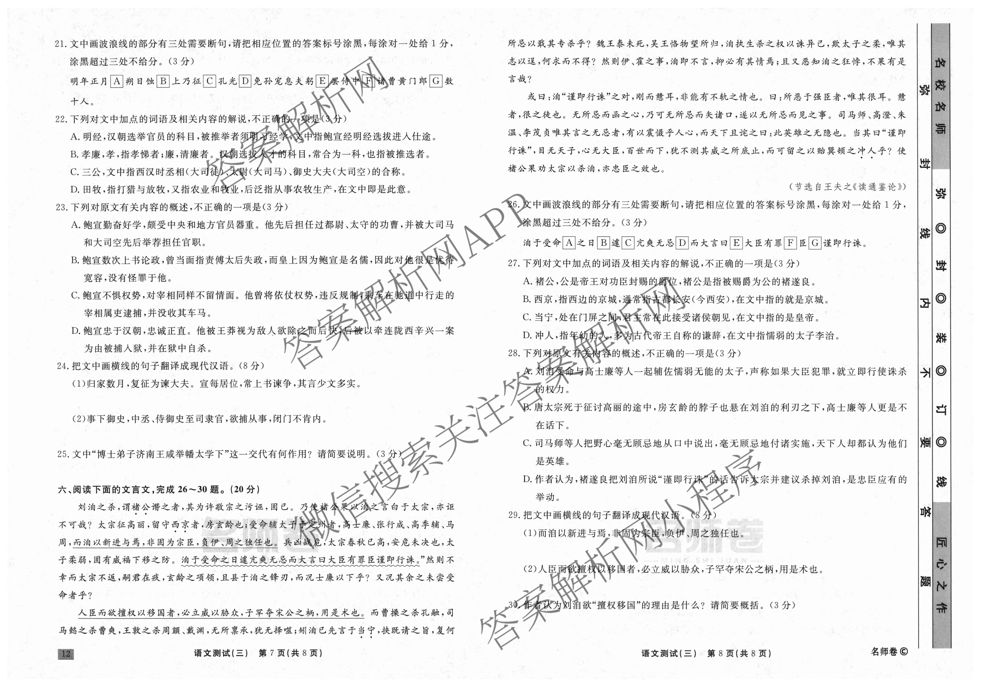 衡水名师卷·2023-2024学年度高三一轮复习考点测试卷·语文(120分钟·同心圆)(三)3试题,目前分科卷答案网已经汇总了衡水名师卷·2023-2024学年度高三一轮复习考点测试卷·语文(120分钟·同心圆)(三)3试题的各科答案和试卷,获取更多衡水名师卷答案解析,请在关注本站。