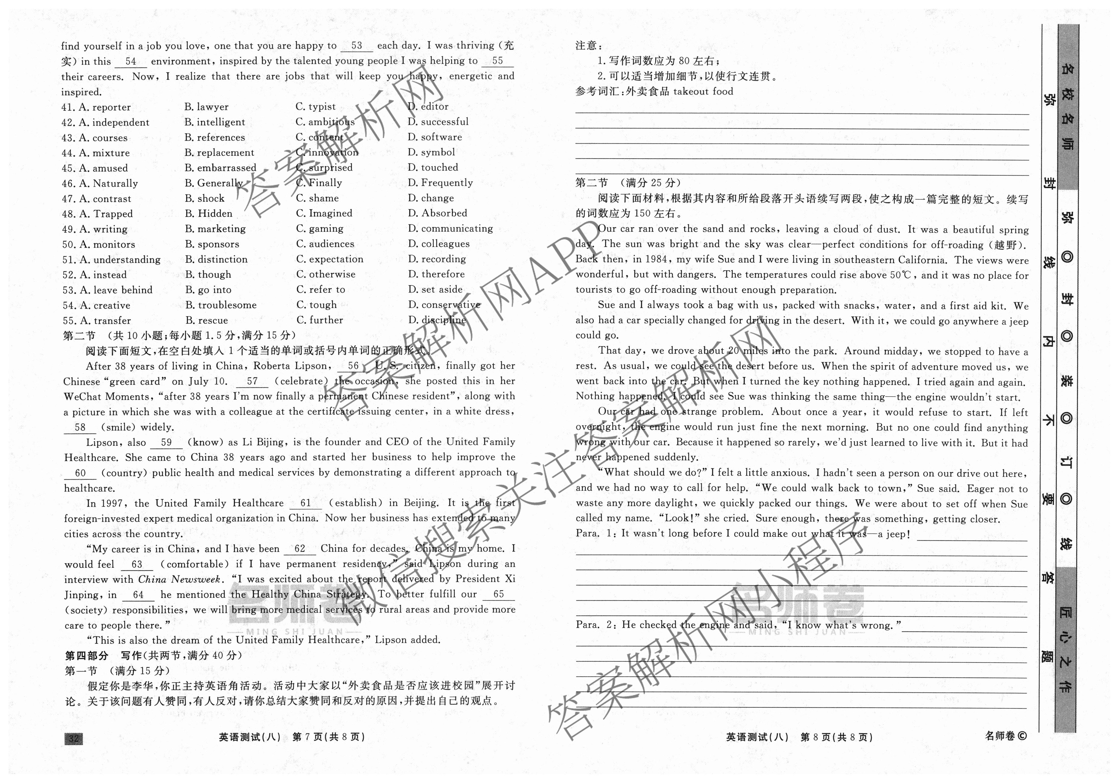 衡水名师卷2023-2024学年度高三一轮复习考点测试卷英语(120分钟同心圆)(八)8试题