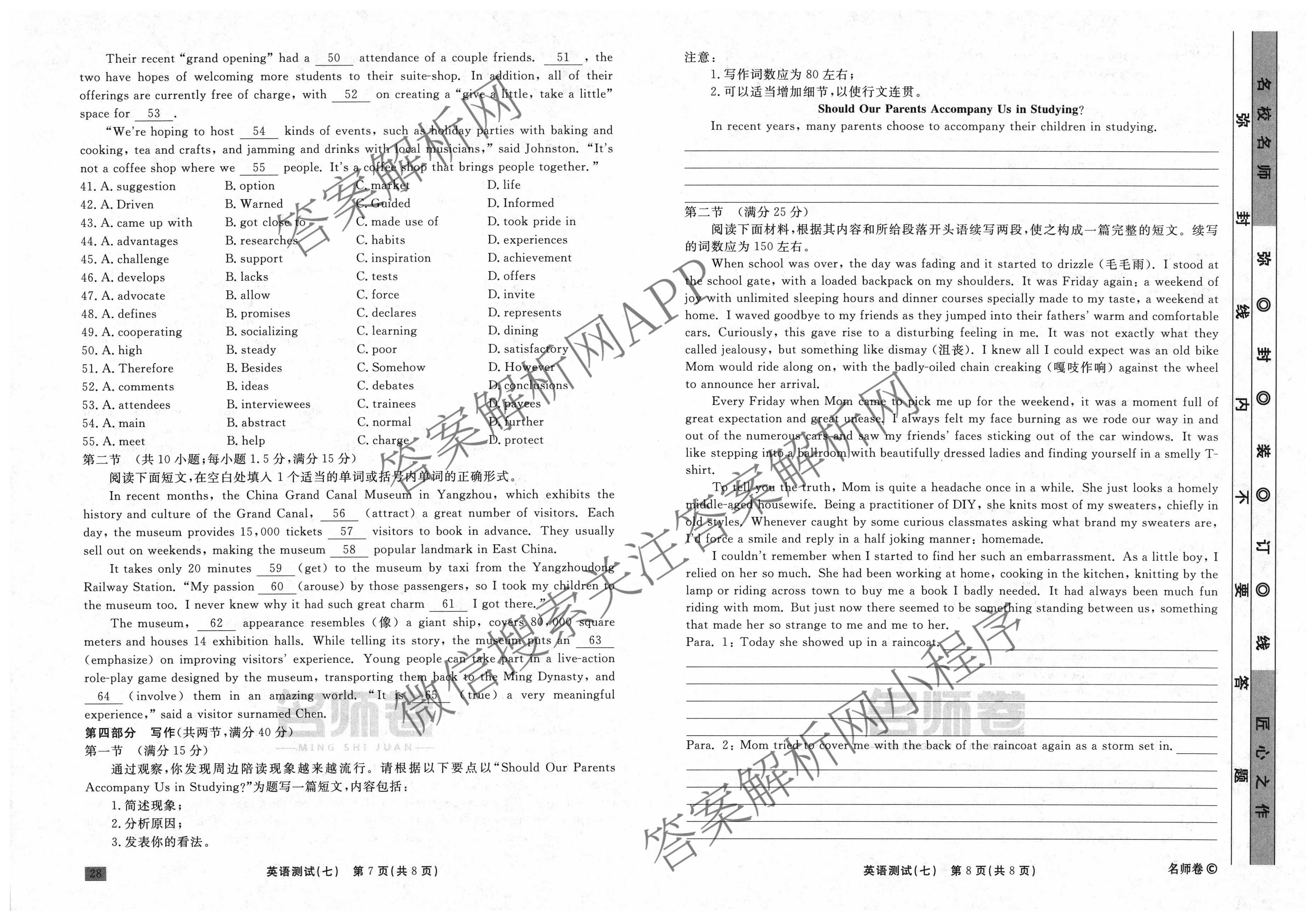 衡水名师卷2023-2024学年度高三一轮复习考点测试卷英语(120分钟同心圆)(七)7试题