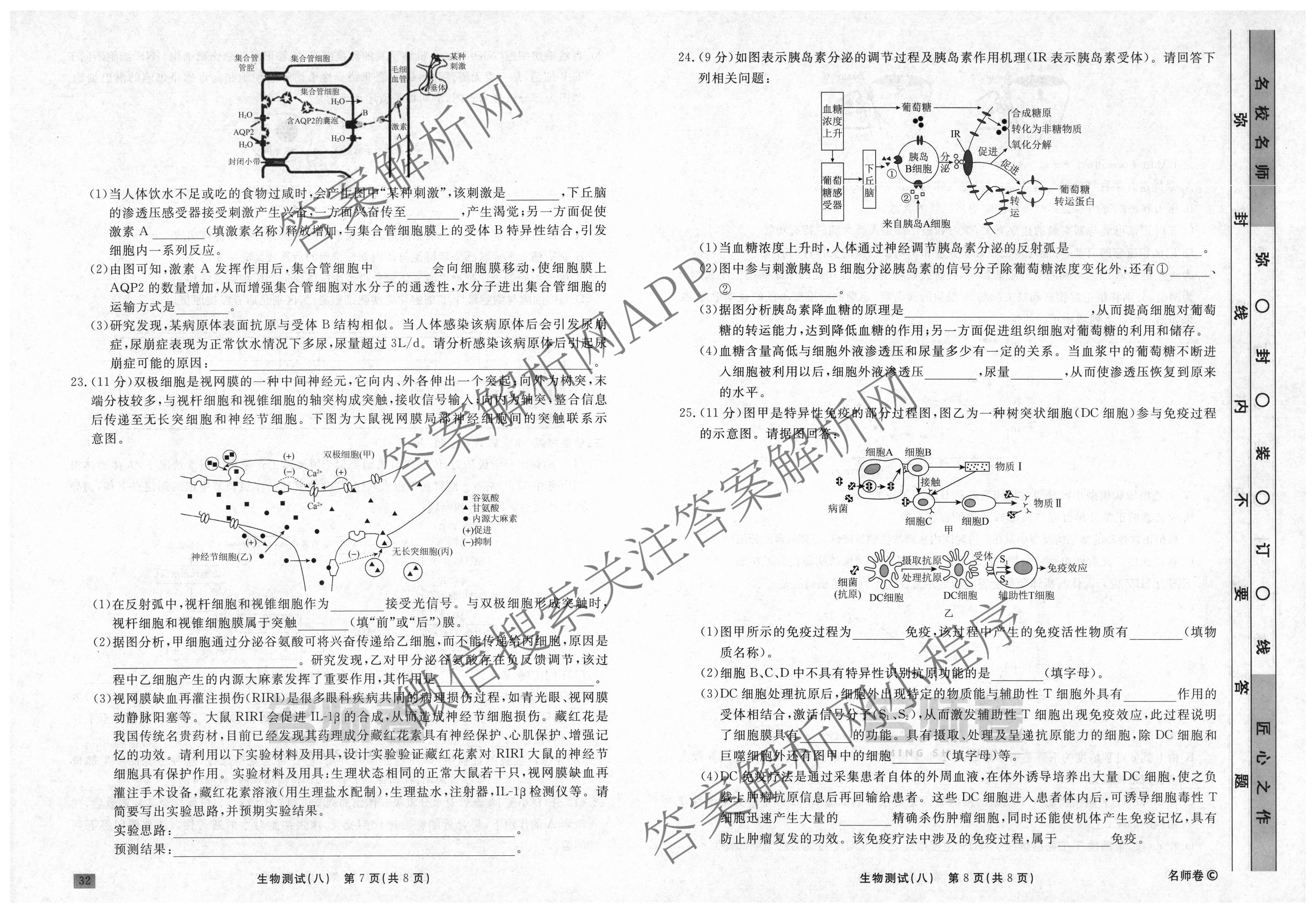 衡水名师卷2023-2024学年度高三一轮复习考点测试卷生物(90分钟圆圈)(八)8试题