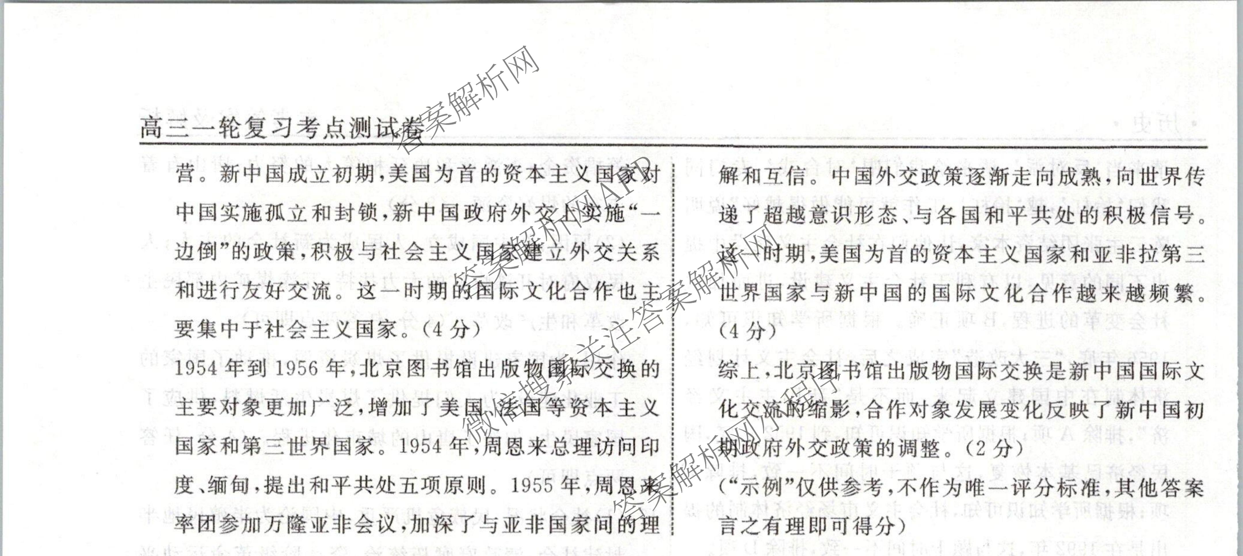 衡水名师卷2023-2024学年度高三一轮复习考点测试卷历史(90分钟圆圈)(八)8答案