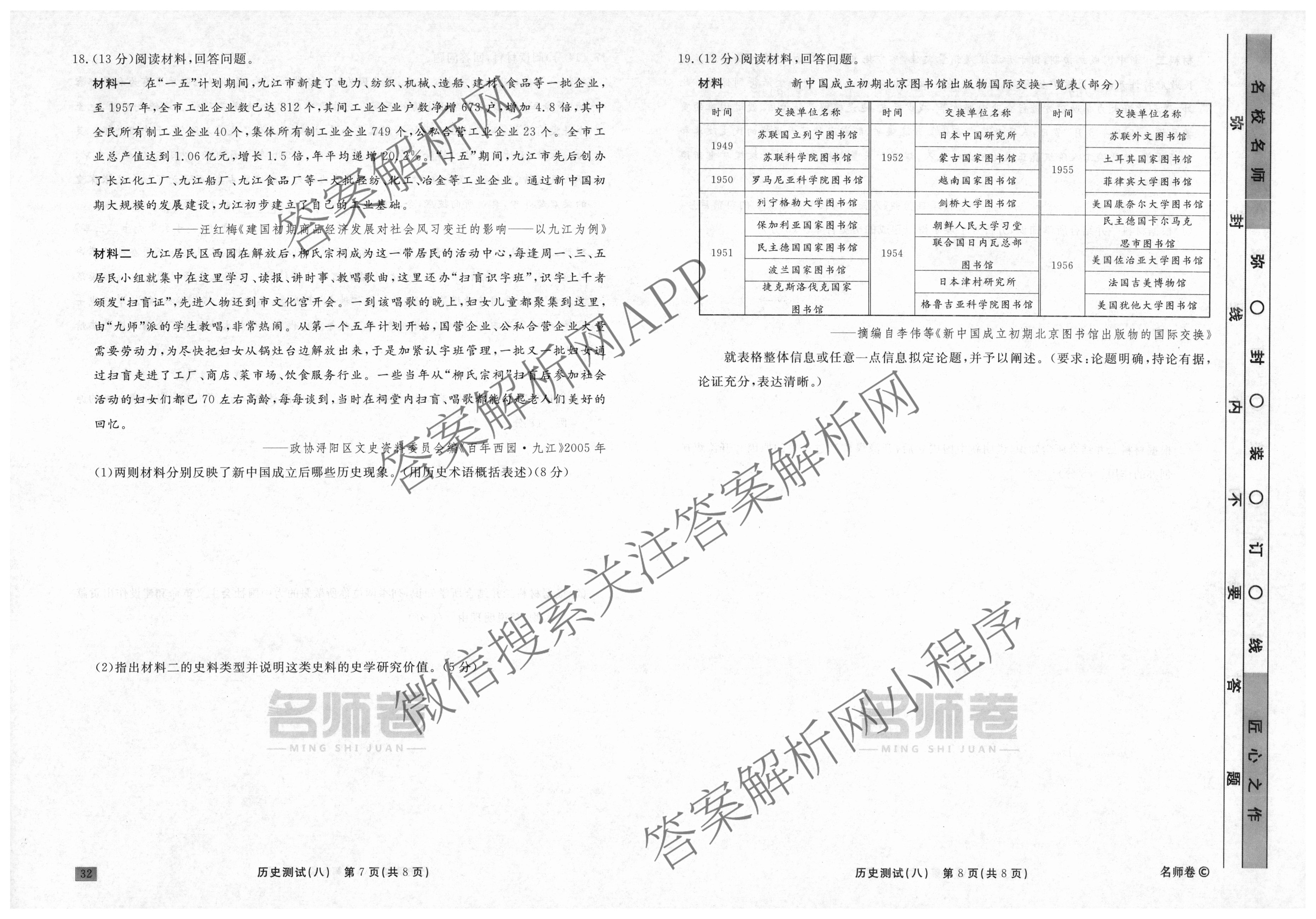衡水名师卷2023-2024学年度高三一轮复习考点测试卷历史(90分钟圆圈)(八)8试题