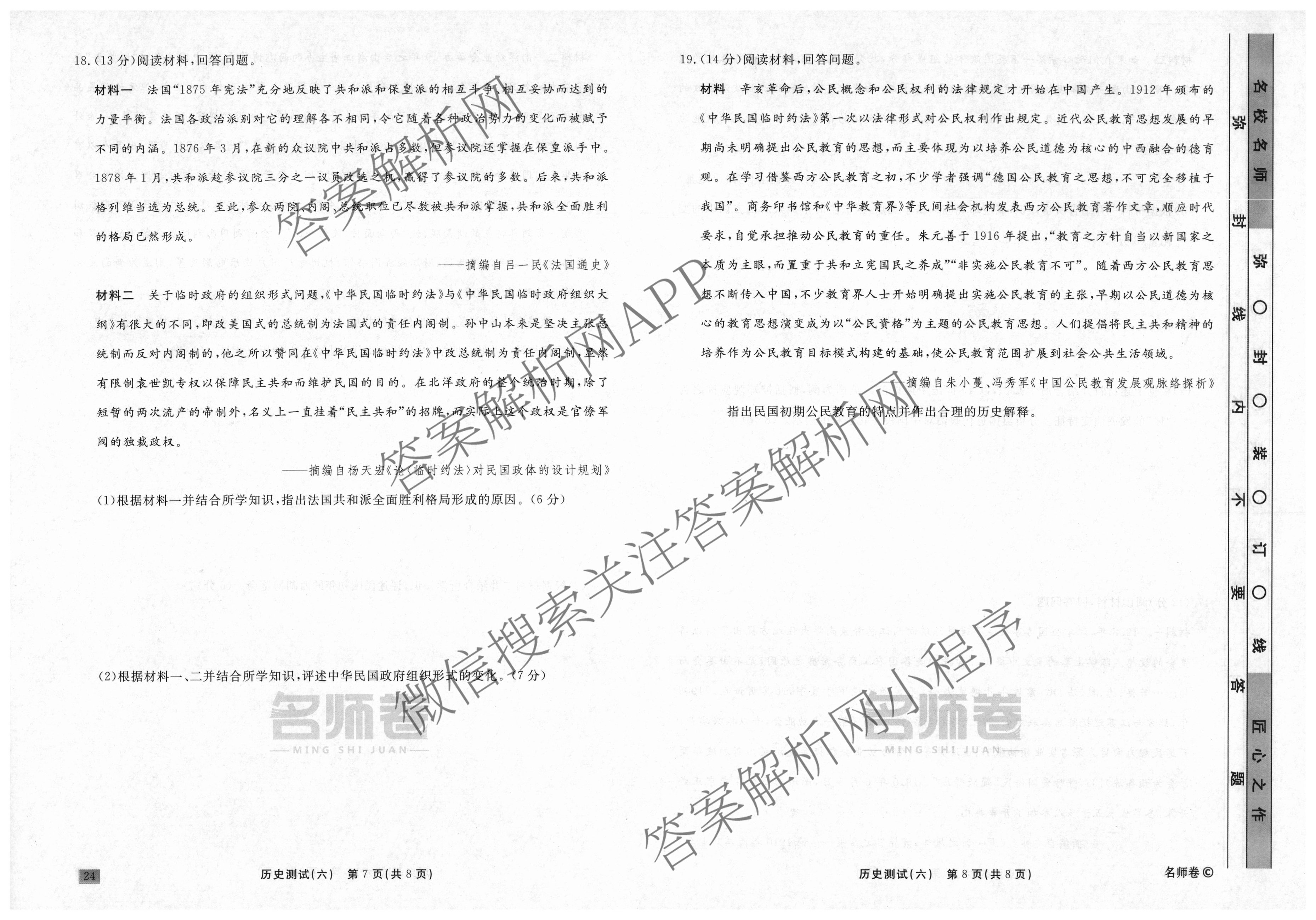 衡水名师卷2023-2024学年度高三一轮复习考点测试卷历史(90分钟圆圈)(六)6试题