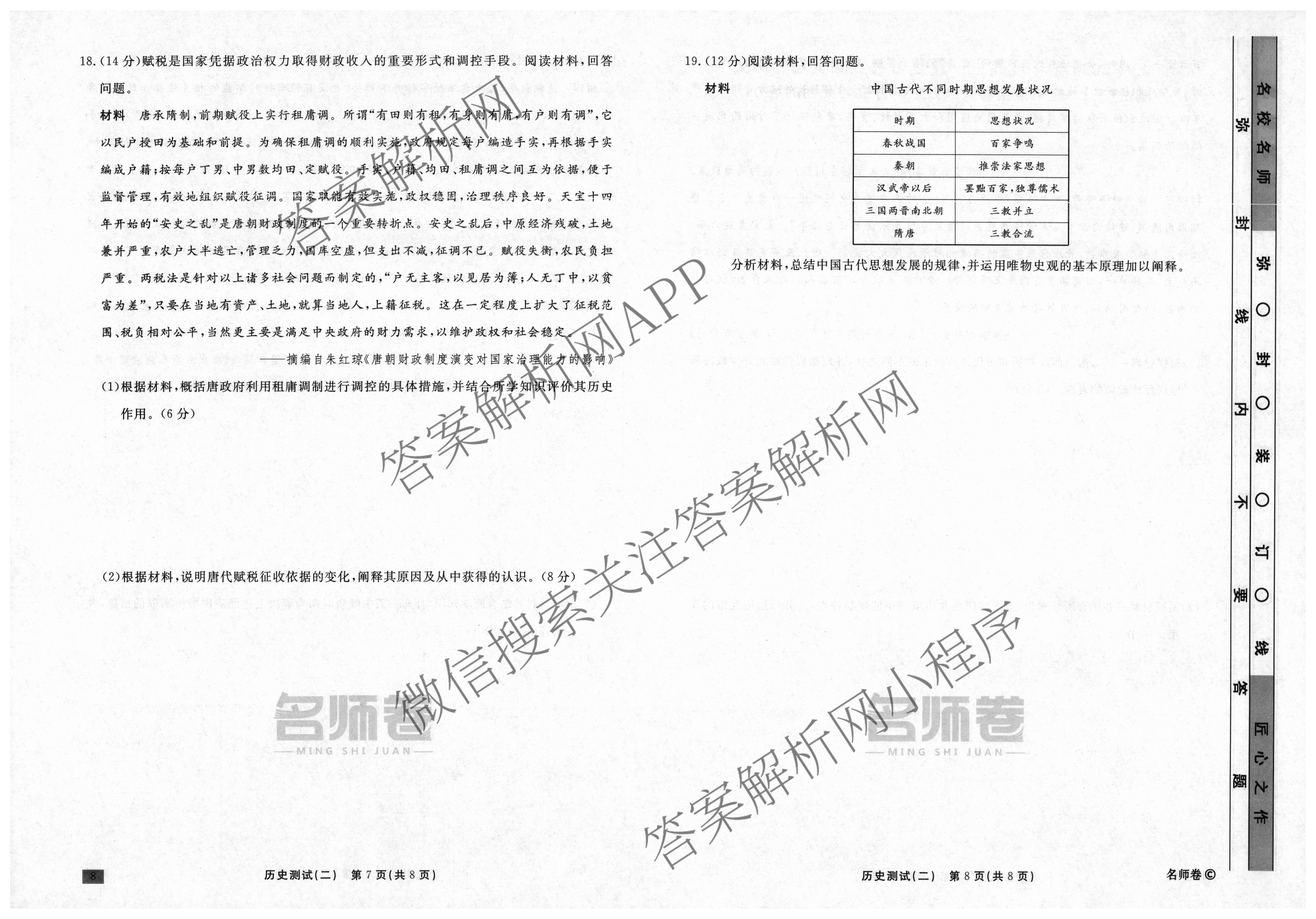 衡水名师卷2023-2024学年度高三一轮复习考点测试卷历史(90分钟圆圈)(二)2试题