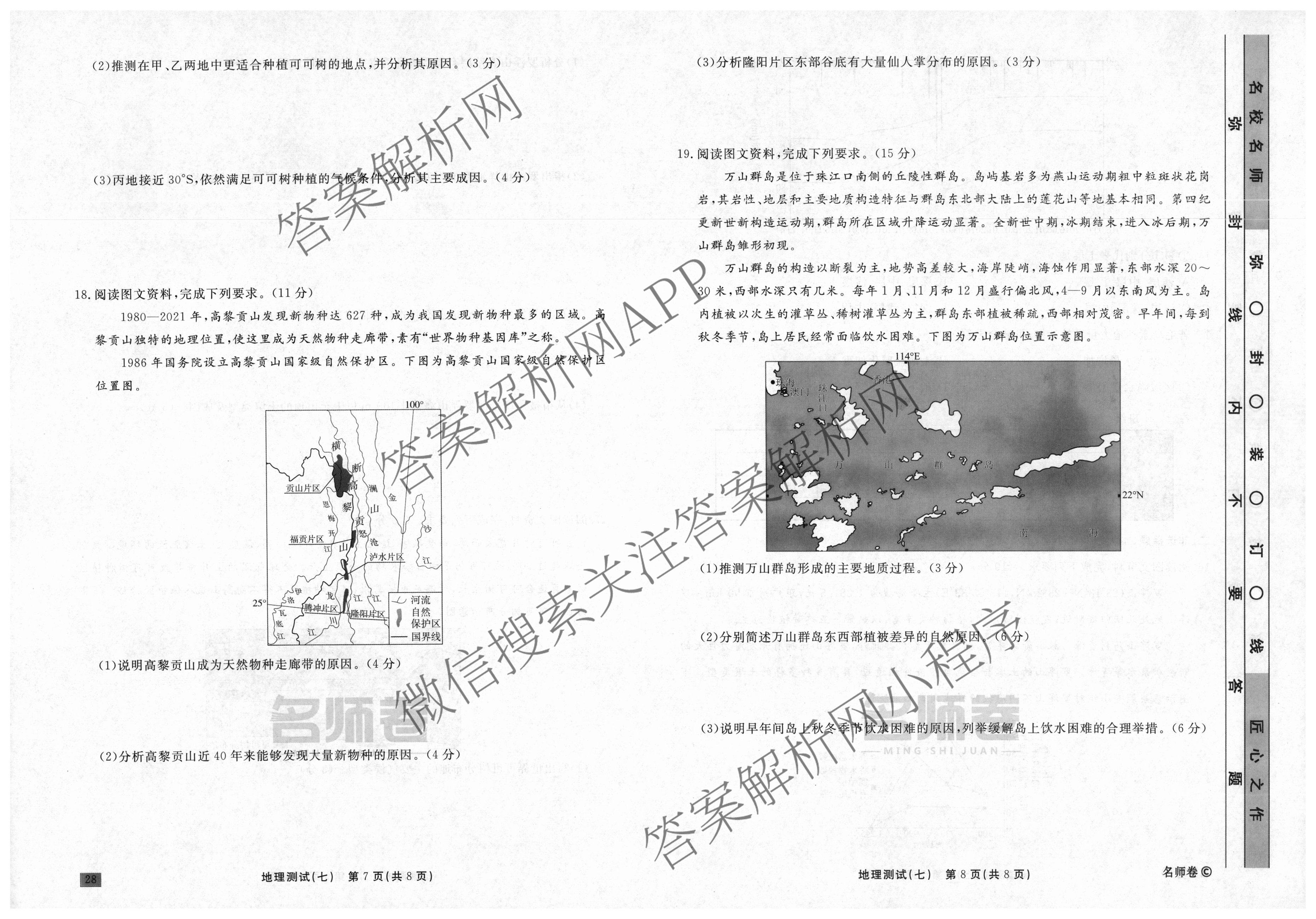 衡水名师卷2023-2024学年度高三一轮复习考点测试卷地理(90分钟圆圈)(七)7试题
