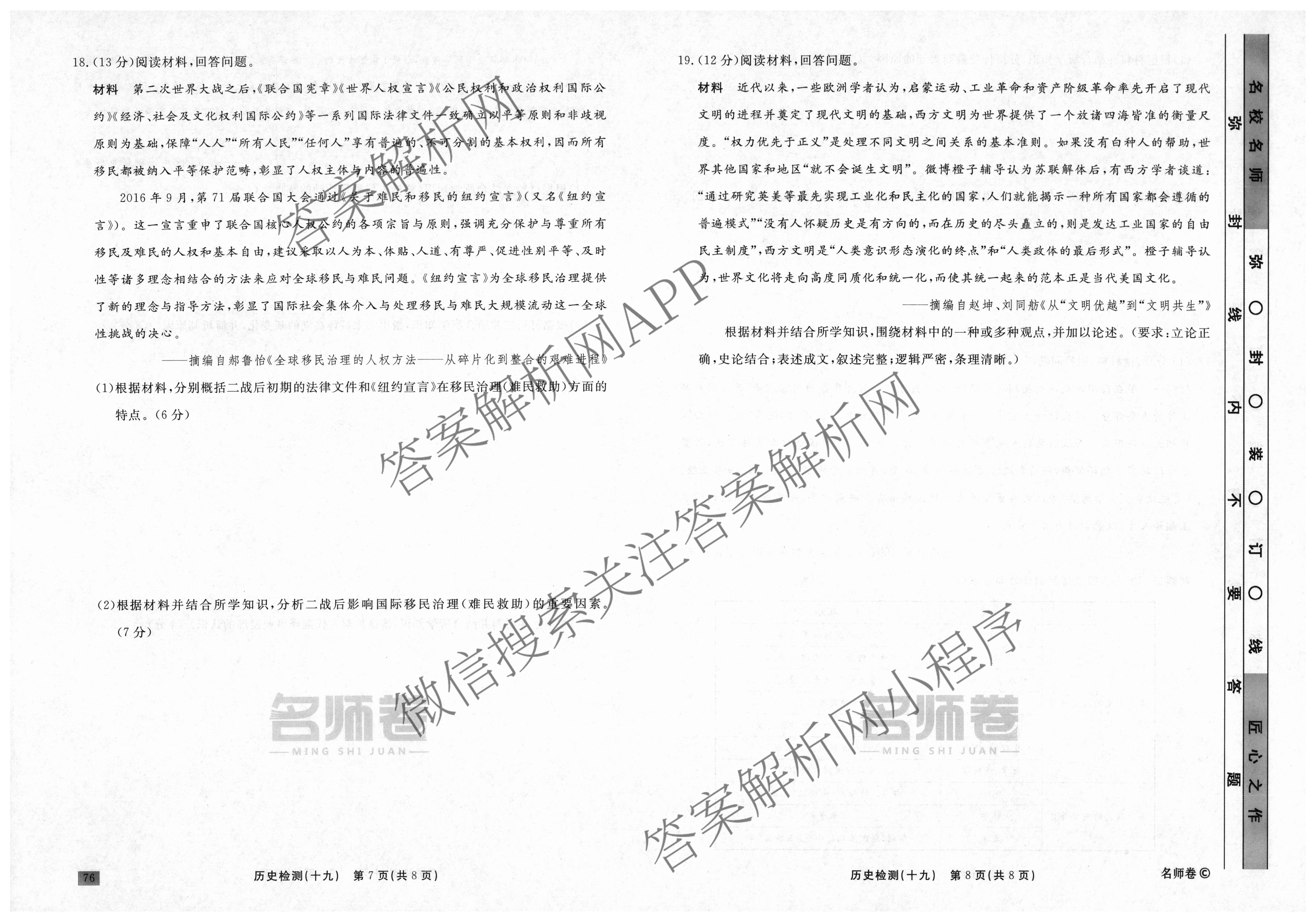衡水名师卷2023-2024学年度高三一轮复习单元检测卷历史(圆圈)检测(十九)19试题