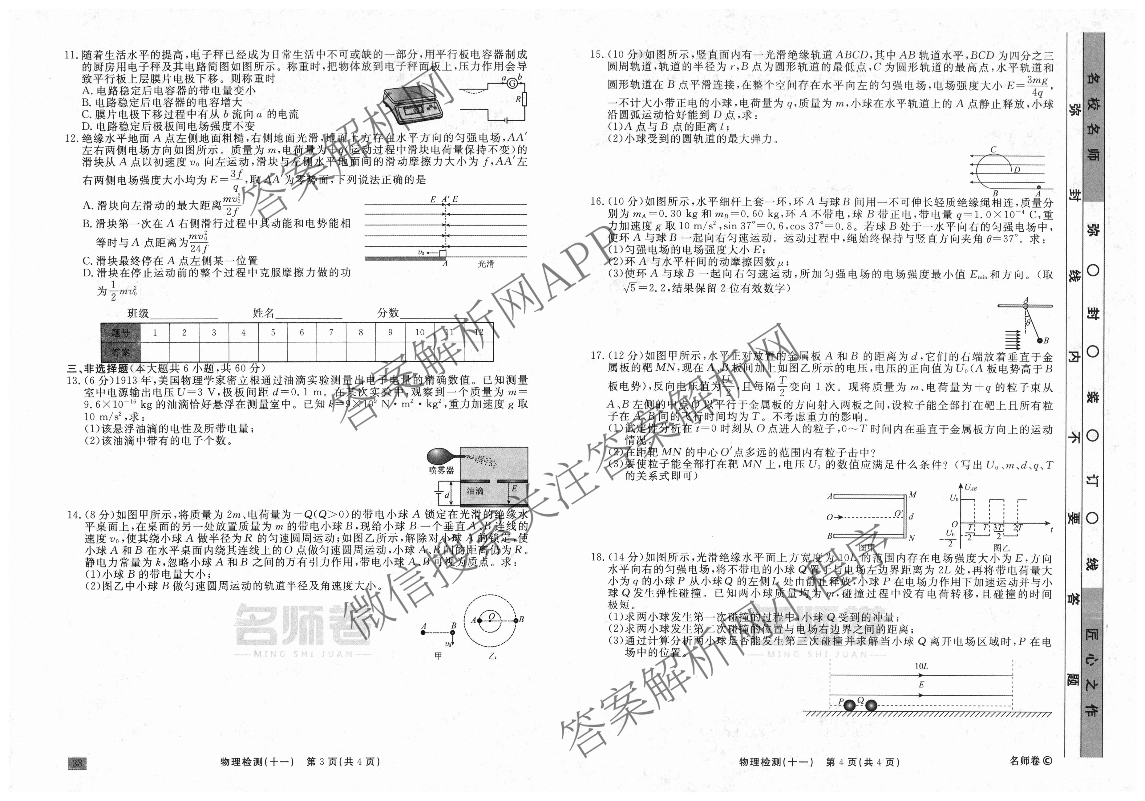 衡水名师卷2023-2024学年度高三一轮复习单元检测卷物理(圆圈)检测(十一)11试题