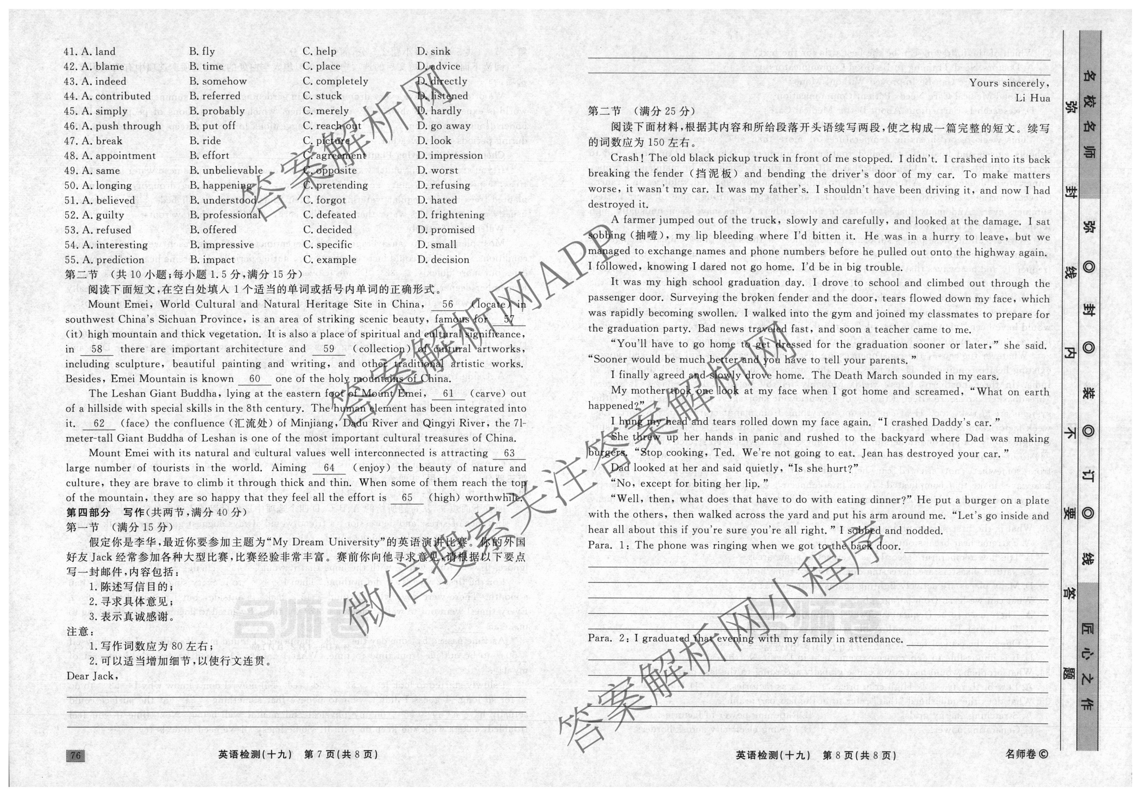 衡水名师卷2023-2024学年度高三一轮复习单元检测卷英语(同心圆)检测(十九)19试题