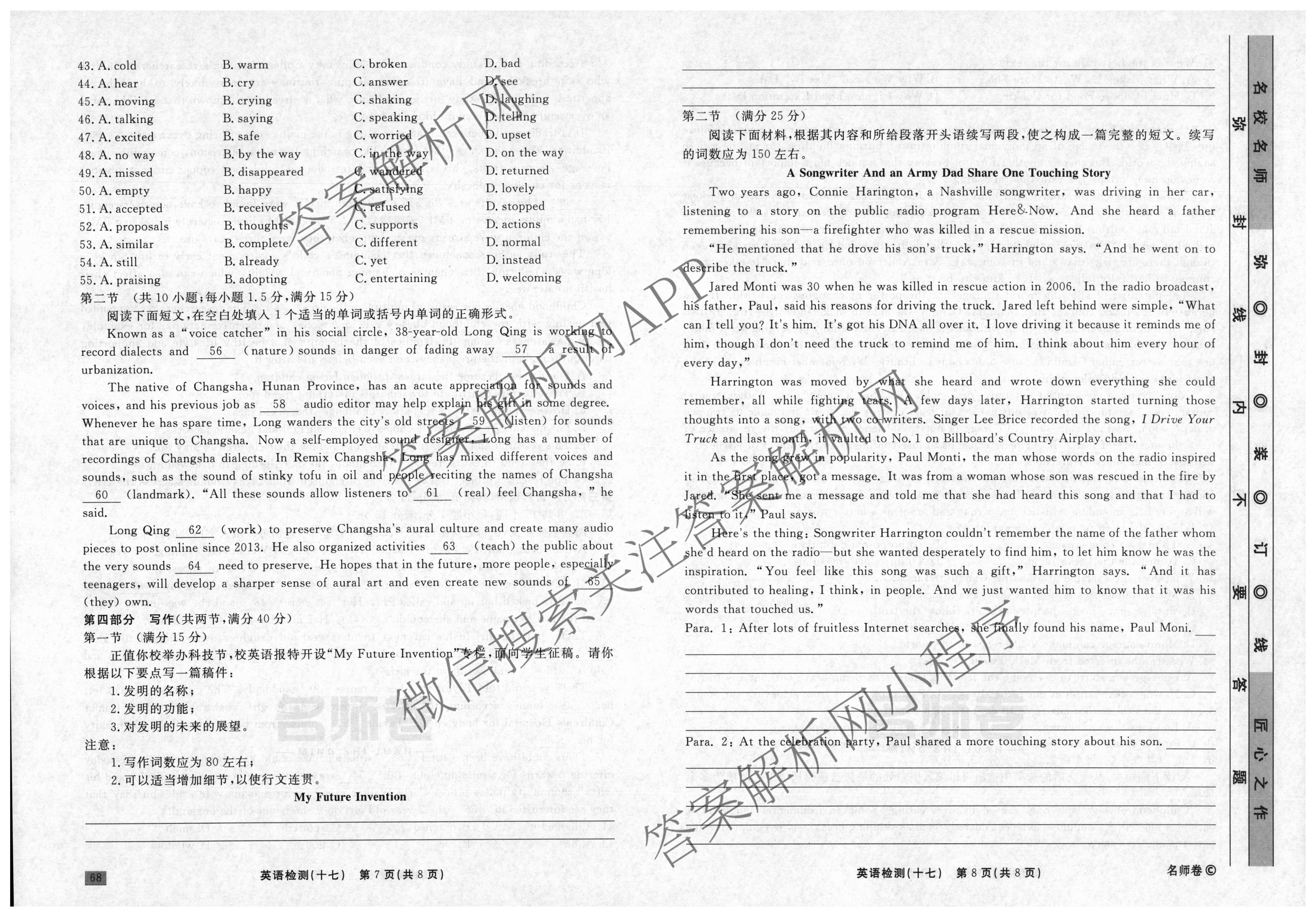 衡水名师卷2023-2024学年度高三一轮复习单元检测卷英语(同心圆)检测(十七)17试题