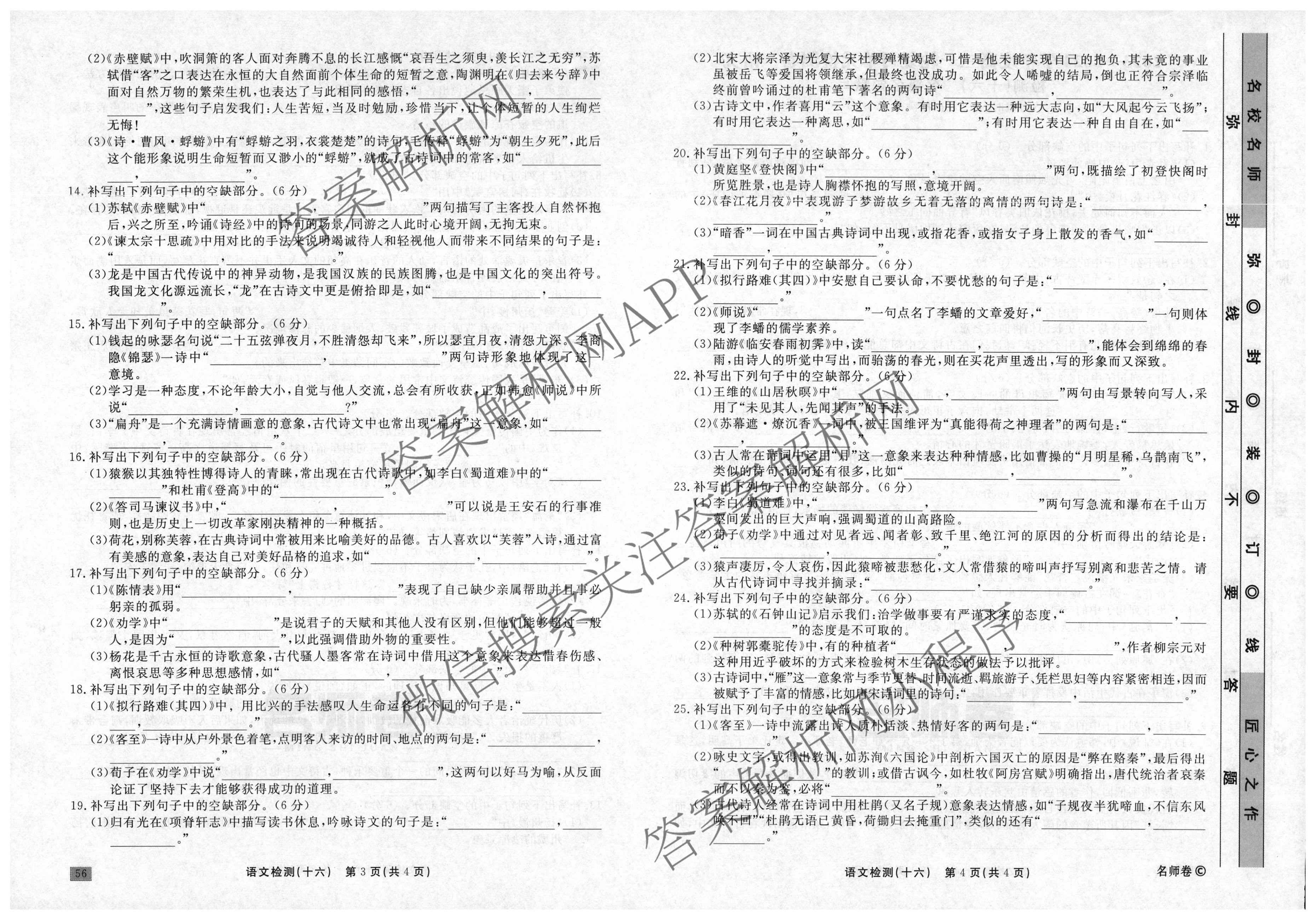衡水名师卷2023-2024学年度高三一轮复习单元检测卷语文(同心圆)检测(十六)16试题