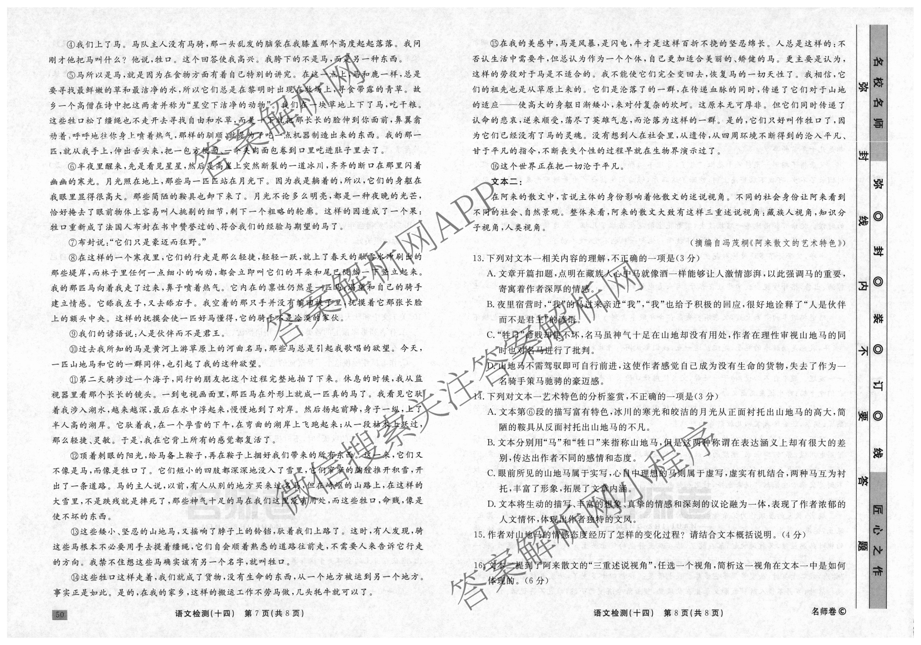 衡水名师卷·2023-2024学年度高三一轮复习单元检测卷·语文(同心圆)·检测(十四)14试题,目前分科卷答案网已经汇总了衡水名师卷·2023-2024学年度高三一轮复习单元检测卷·语文(同心圆)·检测(十四)14试题的各科答案和试卷,获取更多衡水名师卷答案解析,请在关注本站。