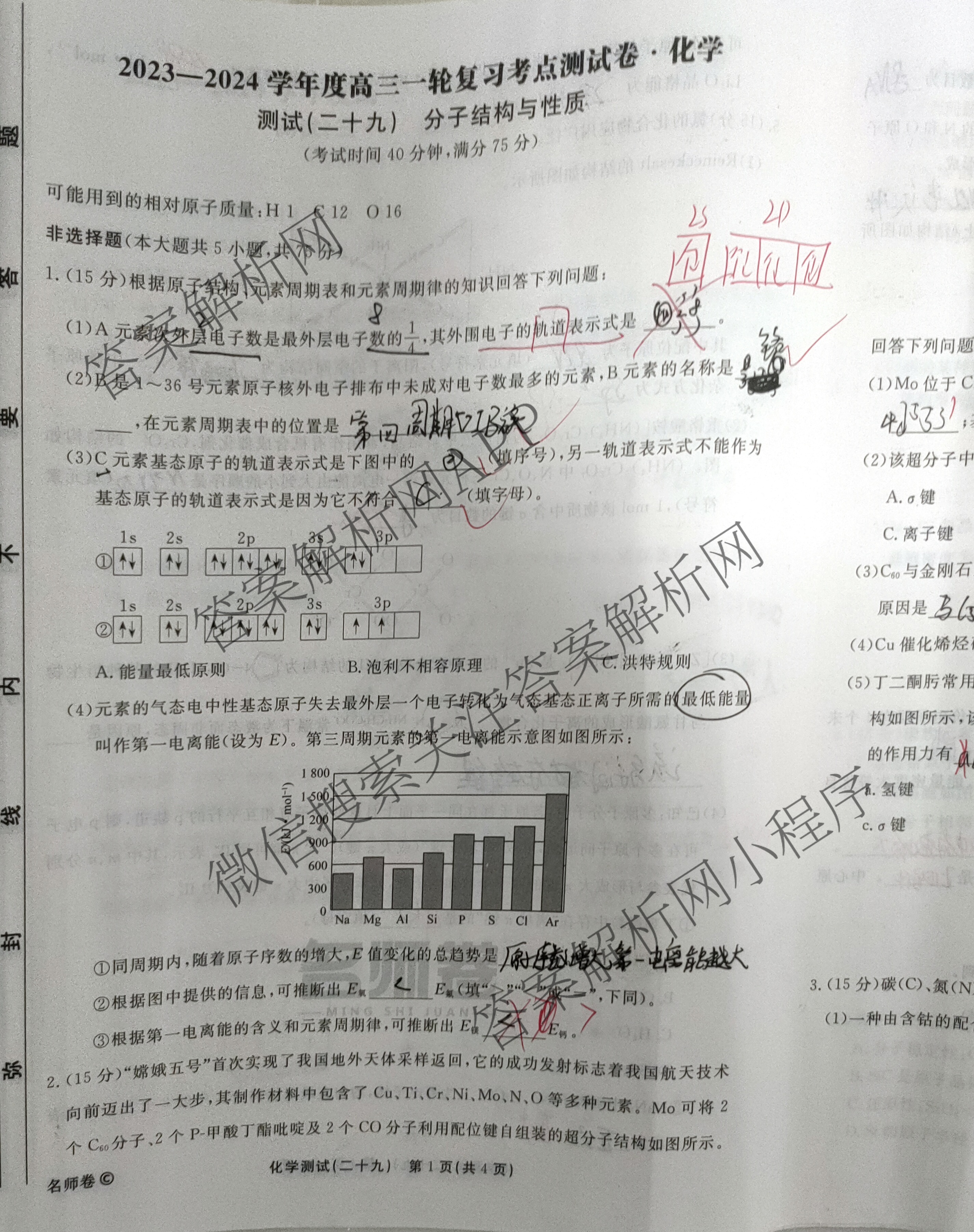 衡水名师卷·2023-2024学年度高三一轮复习考点测试卷·化学(二十九)29试题,目前分科卷答案网已经汇总了衡水名师卷·2023-2024学年度高三一轮复习考点测试卷·化学(二十九)29试题的各科答案和试卷,获取更多衡水名师卷答案解析,请在关注本站。