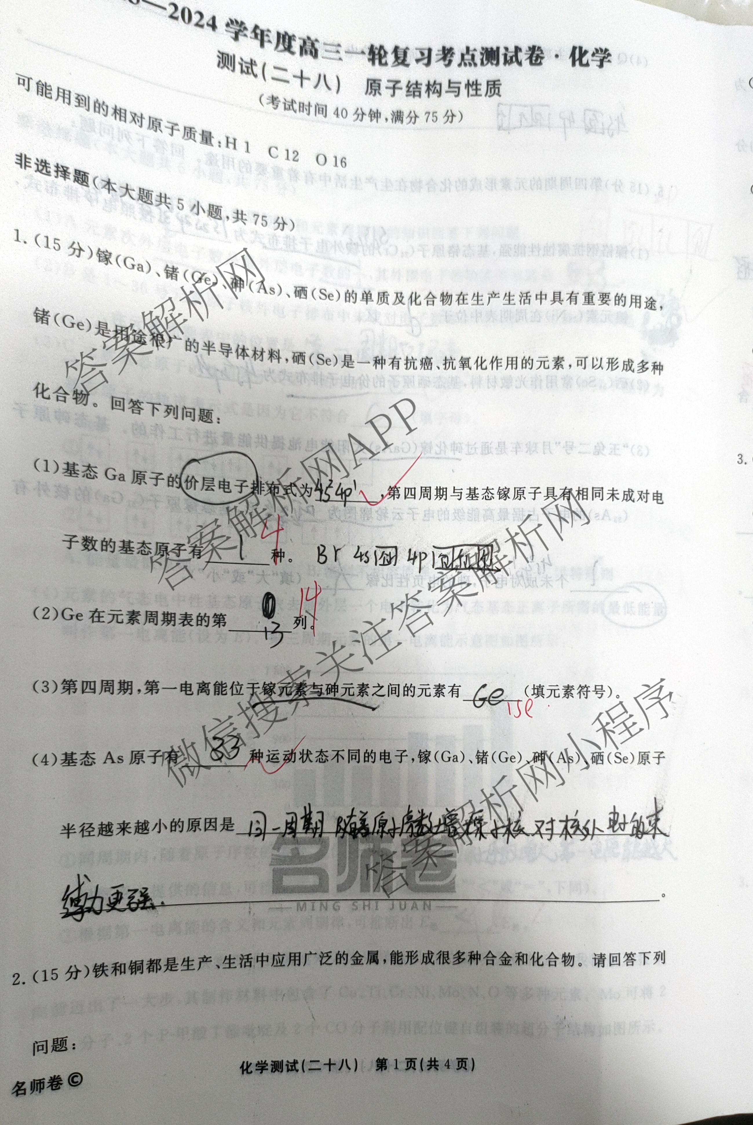 衡水名师卷·2023-2024学年度高三一轮复习考点测试卷·化学(二十八)28试题,目前分科卷答案网已经汇总了衡水名师卷·2023-2024学年度高三一轮复习考点测试卷·化学(二十八)28试题的各科答案和试卷,获取更多衡水名师卷答案解析,请在关注本站。