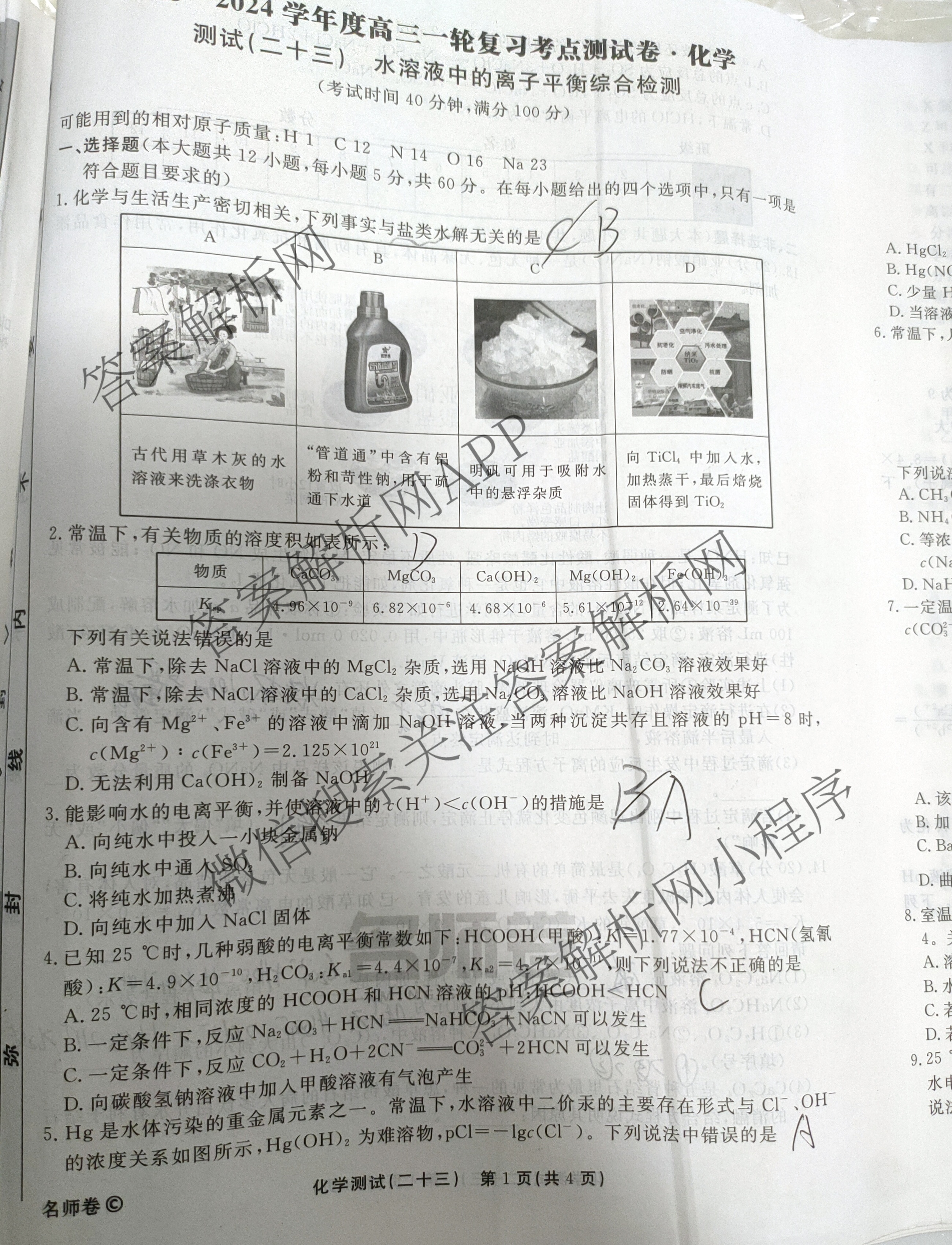 衡水名师卷2023-2024学年度高三一轮复习考点测试卷化学(二十三)23试题