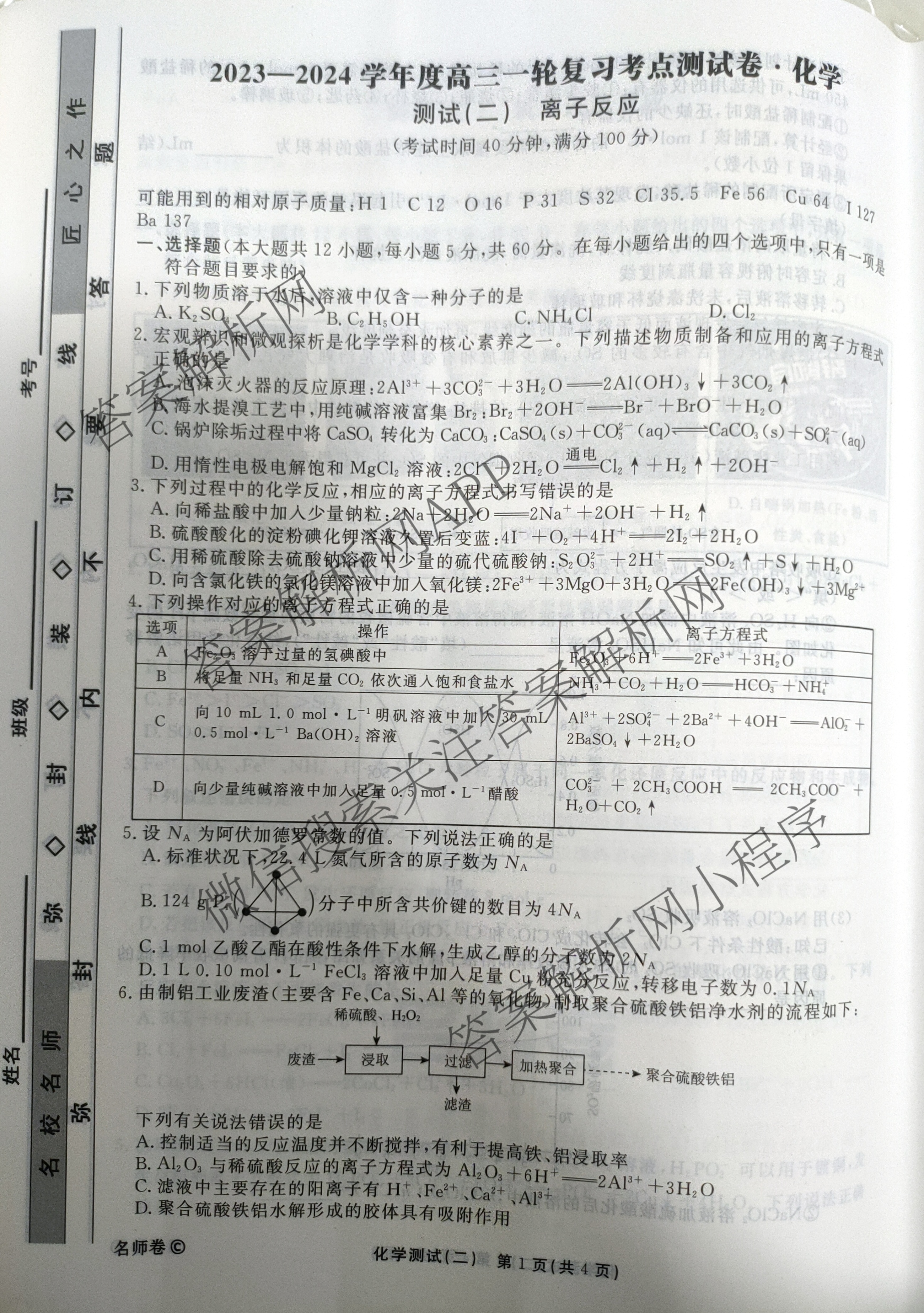 衡水名师卷·2023-2024学年度高三一轮复习考点测试卷·化学(二)2试题,目前分科卷答案网已经汇总了衡水名师卷·2023-2024学年度高三一轮复习考点测试卷·化学(二)2试题的各科答案和试卷,获取更多衡水名师卷答案解析,请在关注本站。