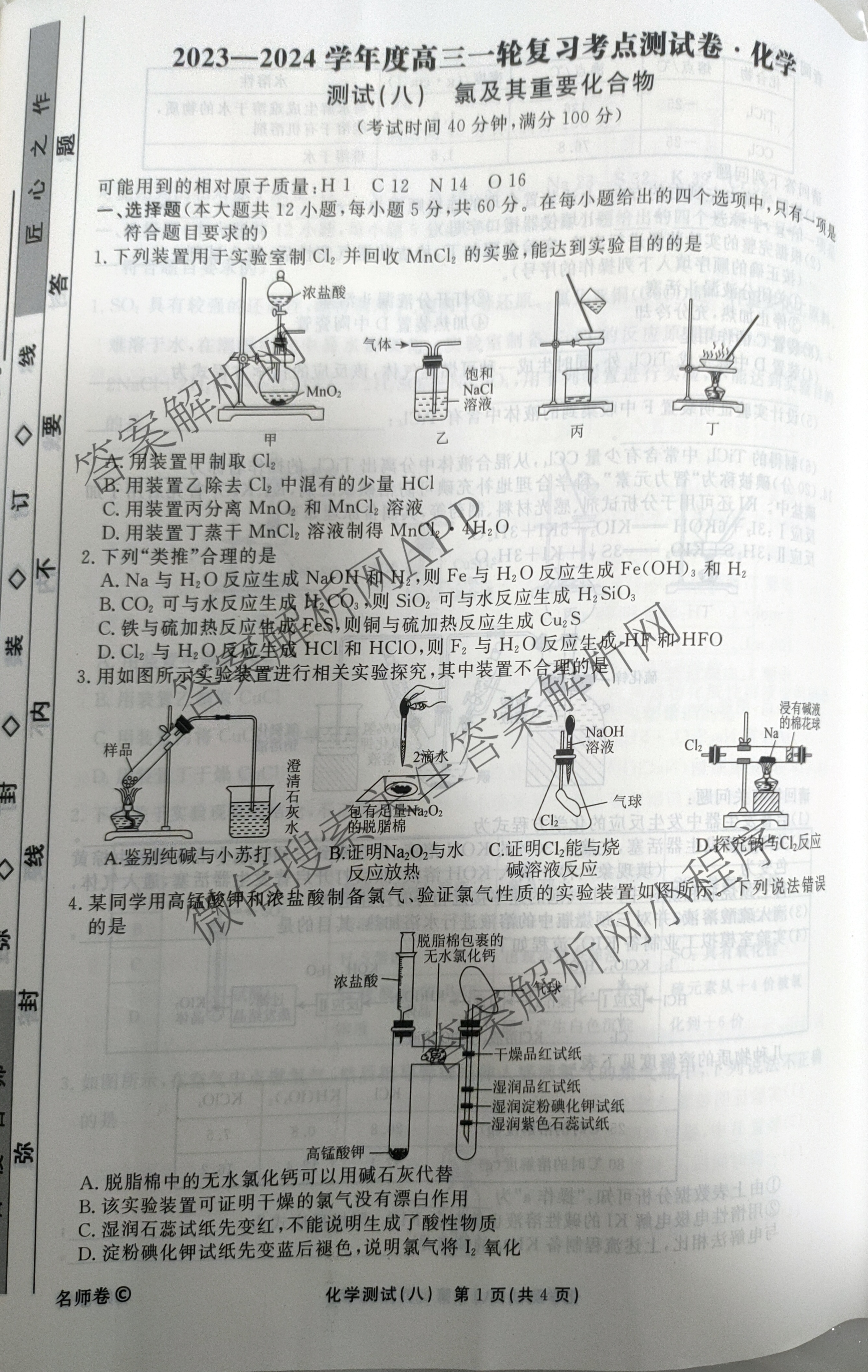 衡水名师卷·2023-2024学年度高三一轮复习考点测试卷·化学(八)8试题,目前分科卷答案网已经汇总了衡水名师卷·2023-2024学年度高三一轮复习考点测试卷·化学(八)8试题的各科答案和试卷,获取更多衡水名师卷答案解析,请在关注本站。