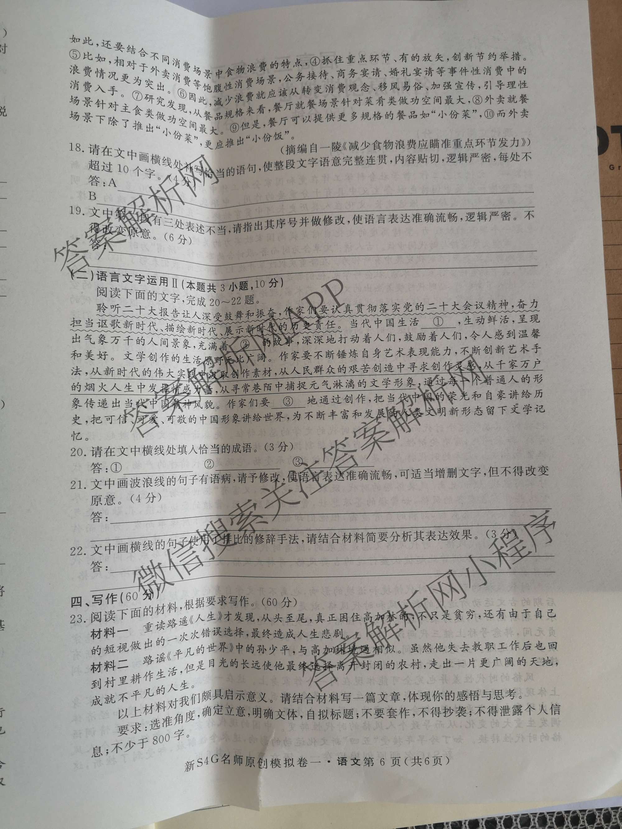 2024届高三总复习·名师原创模拟 语文(新S4G)(一)1试题,目前分科卷答案网已经汇总了2024届高三总复习·名师原创模拟 语文(新S4G)(一)1试题的各科答案和试卷,获取更多高三总复习·名师原创模拟答案解析,请在关注本站。