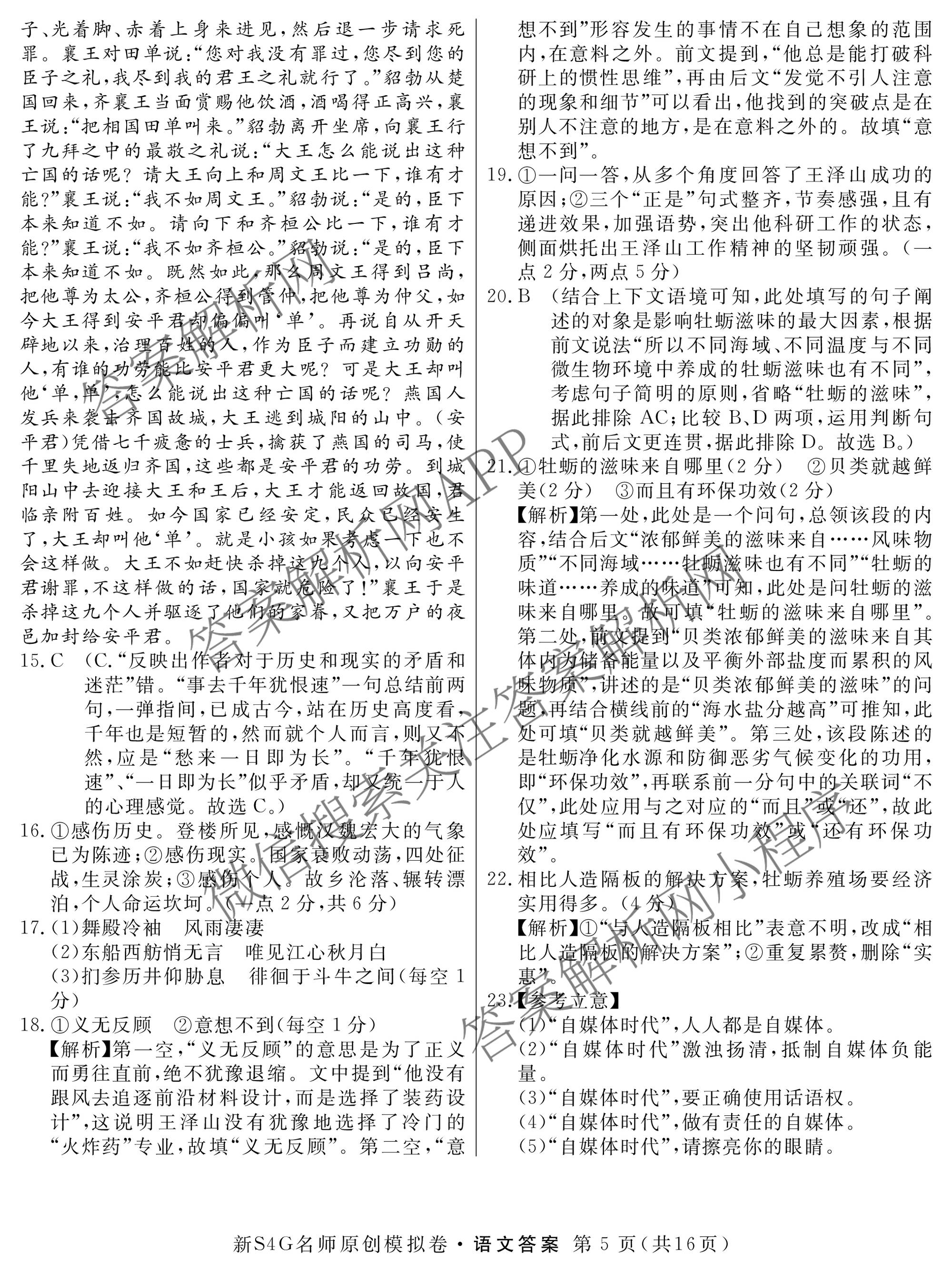 2024届[高三总复习名师原创模拟] 语文(新S4G)(八)8答案