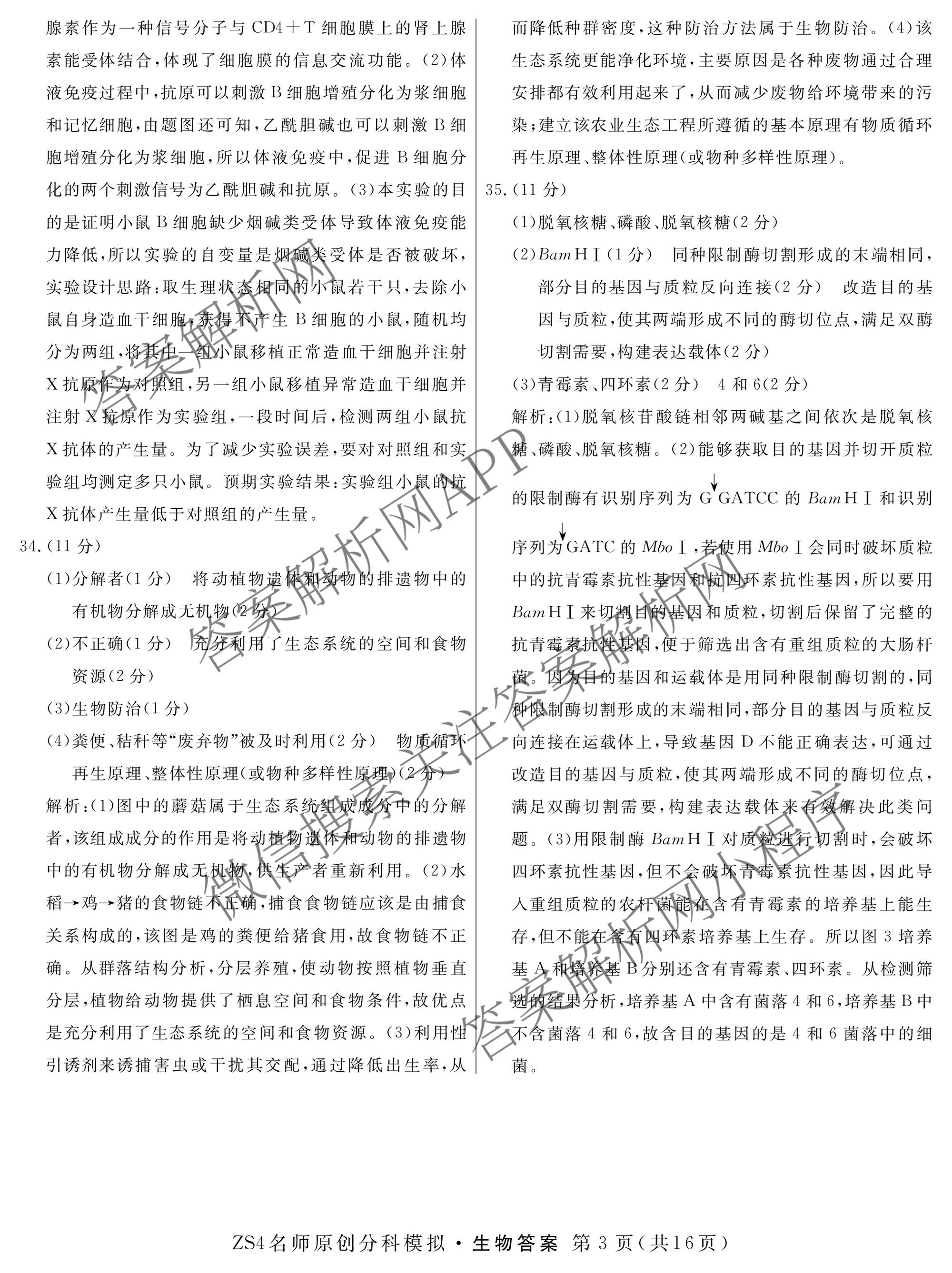 2024届[高三]总复习名师原创分科模拟 生物(ZS4)(一)1答案