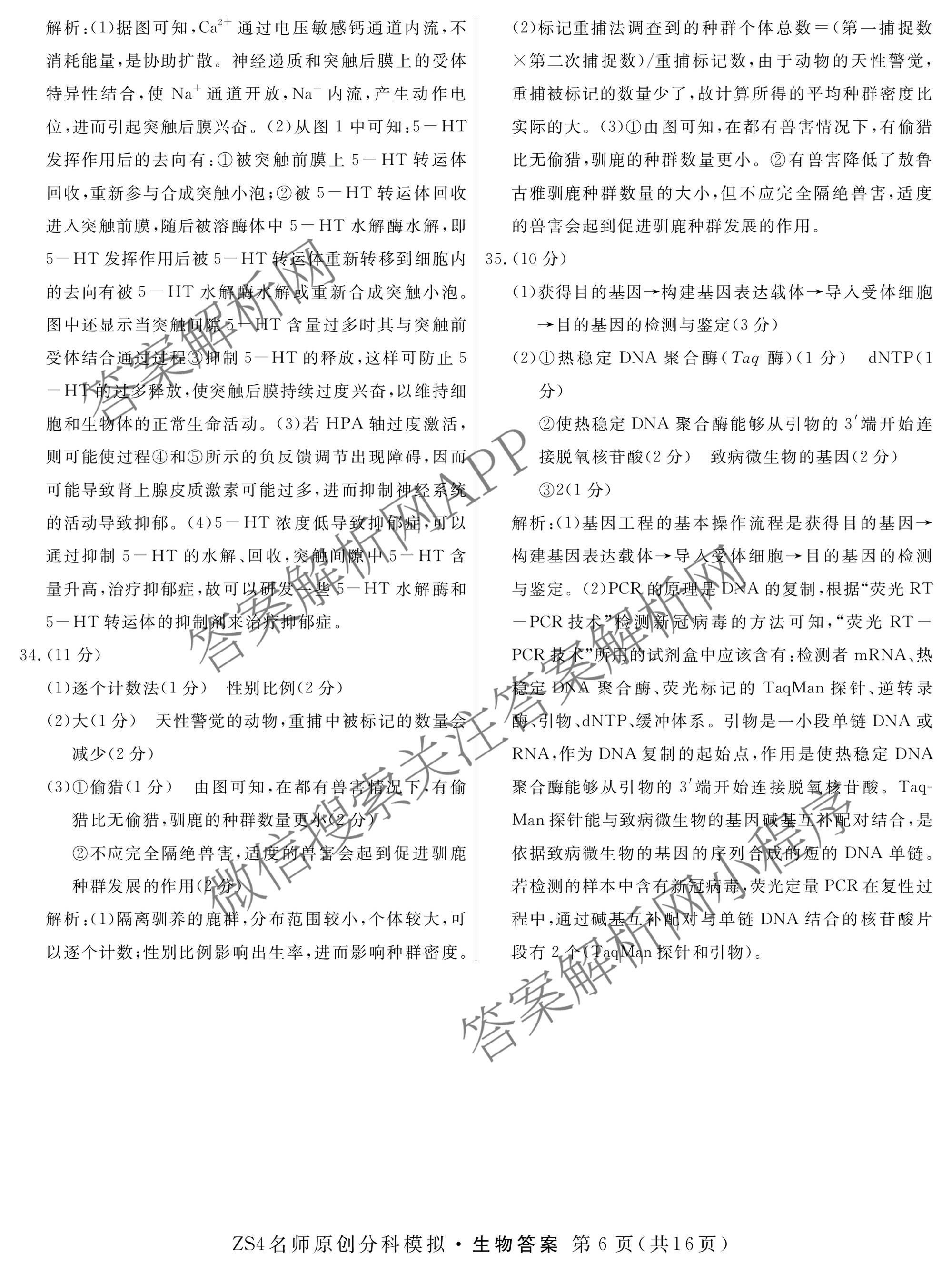 - [高三]2024届总复习名师原创分科模拟(八)8生物(S4)答案