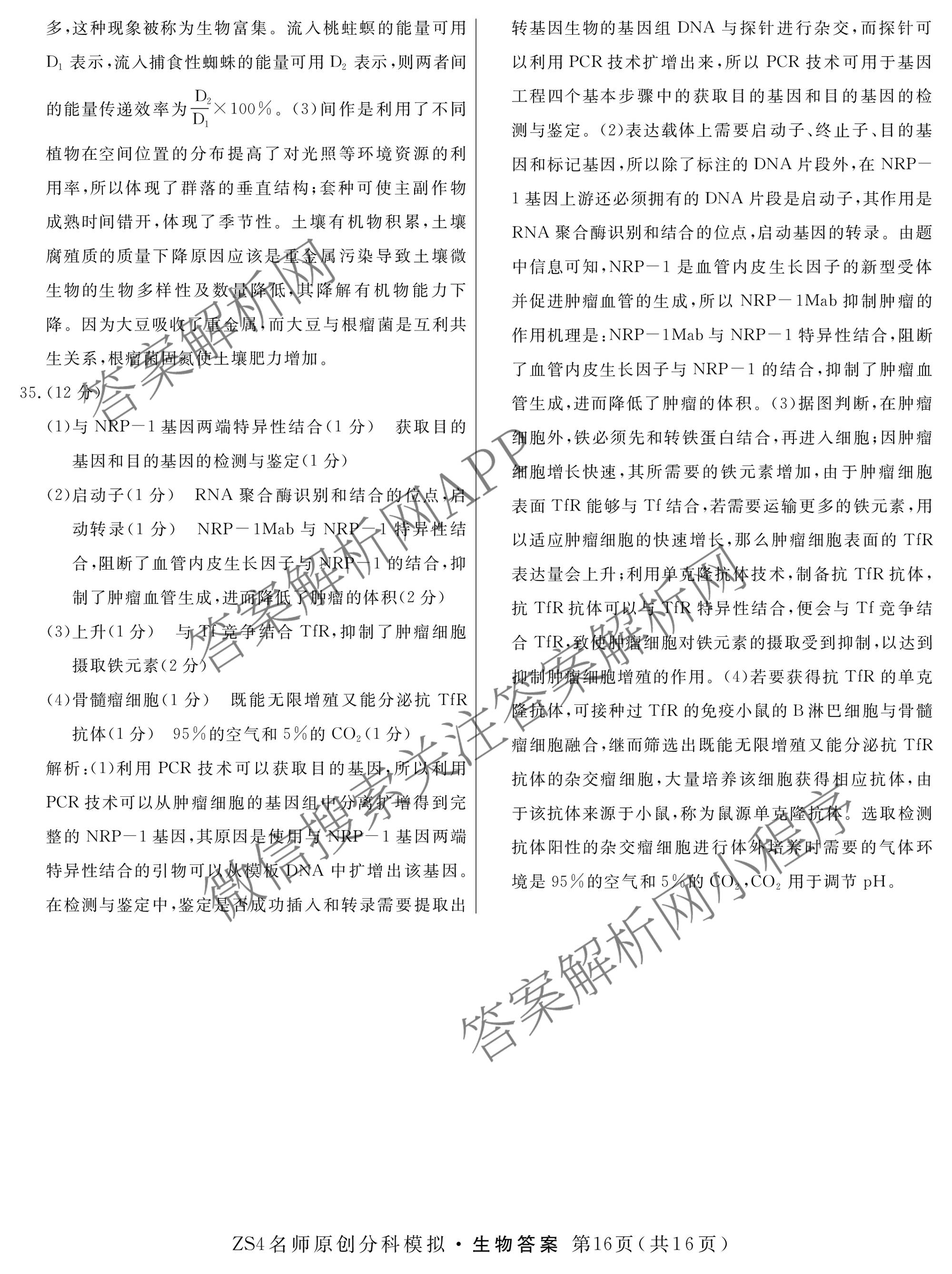 2024届高三总复习·名师原创分科模拟 生物(ZS4)(六)6答案,目前分科卷答案网已经汇总了2024届高三总复习·名师原创分科模拟 生物(ZS4)(六)6答案的各科答案和试卷,获取更多高三总复习·名师原创模拟答案解析,请在关注本站。