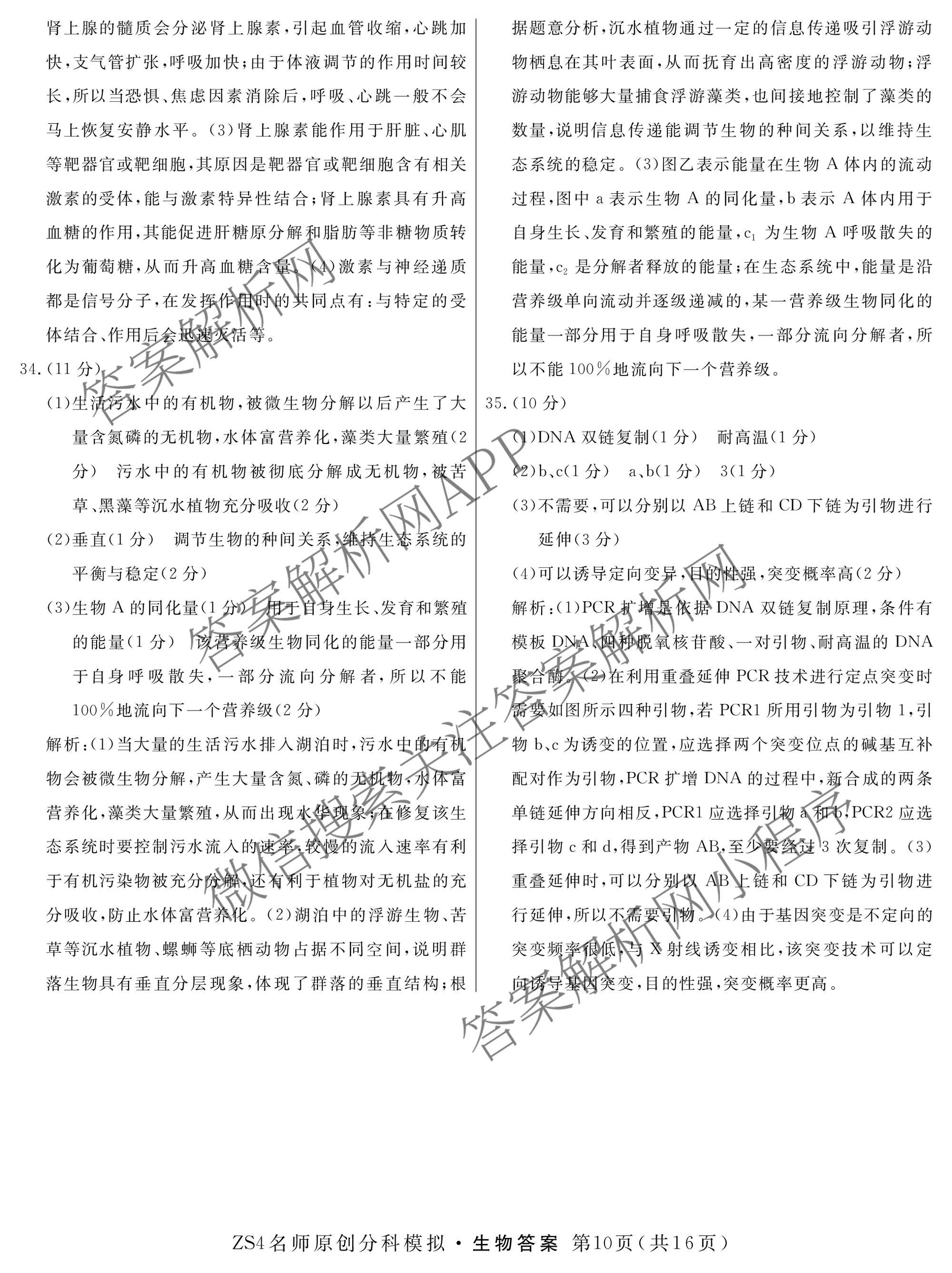 - 2024届[高三]总复习·名师原创分科模拟 生物(ZS4)(四)4答案
