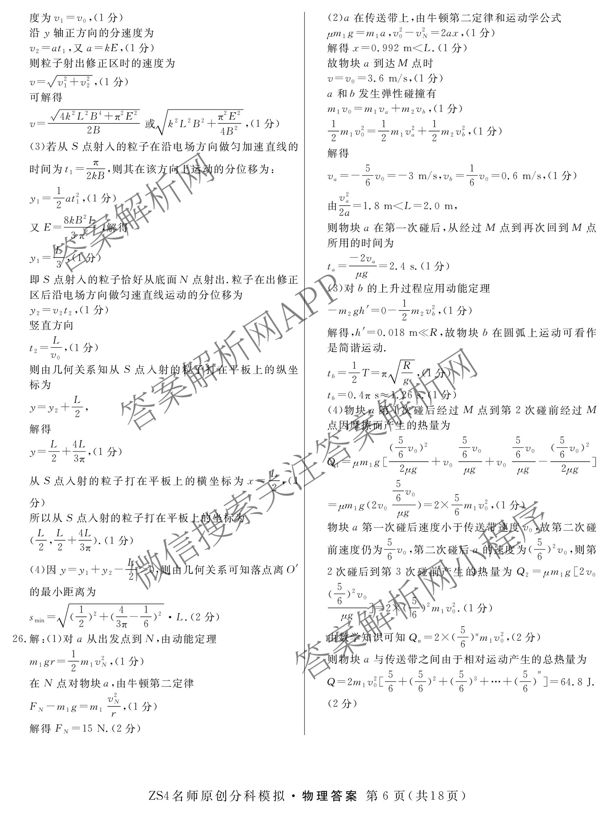 (高三)2024届总复习·名师原创分科模拟 物理(ZS4)(二)2答案