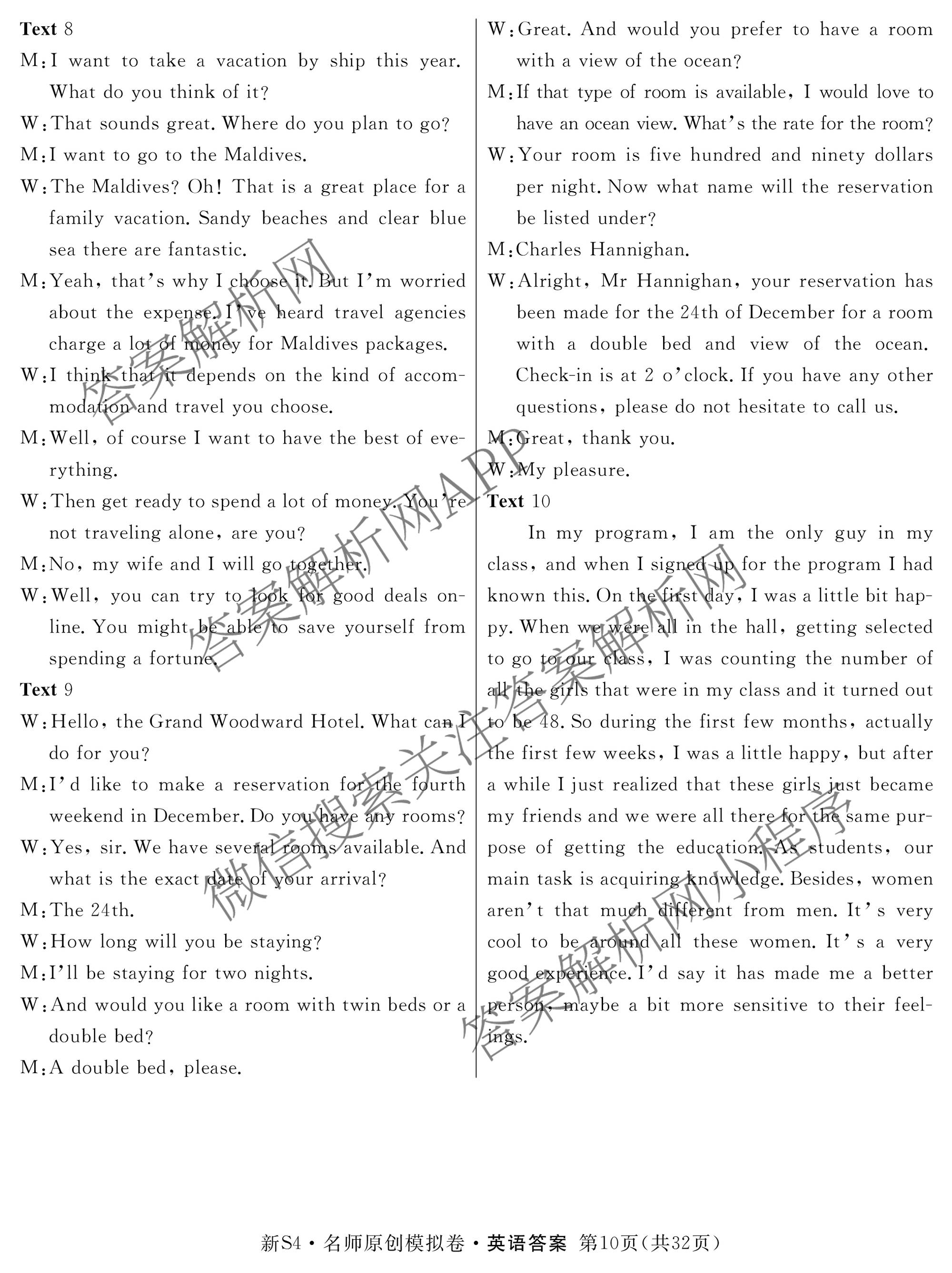 - [高三]2024届(总复习·名师原创模拟) 英语(S4)(二)2答案