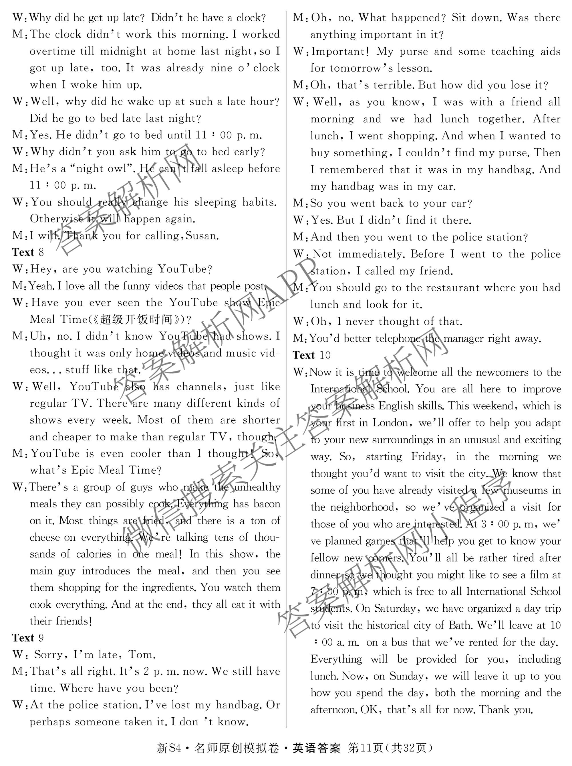 - 2024届(高三)总复习·名师原创分科模拟(八)8英语(S4)答案