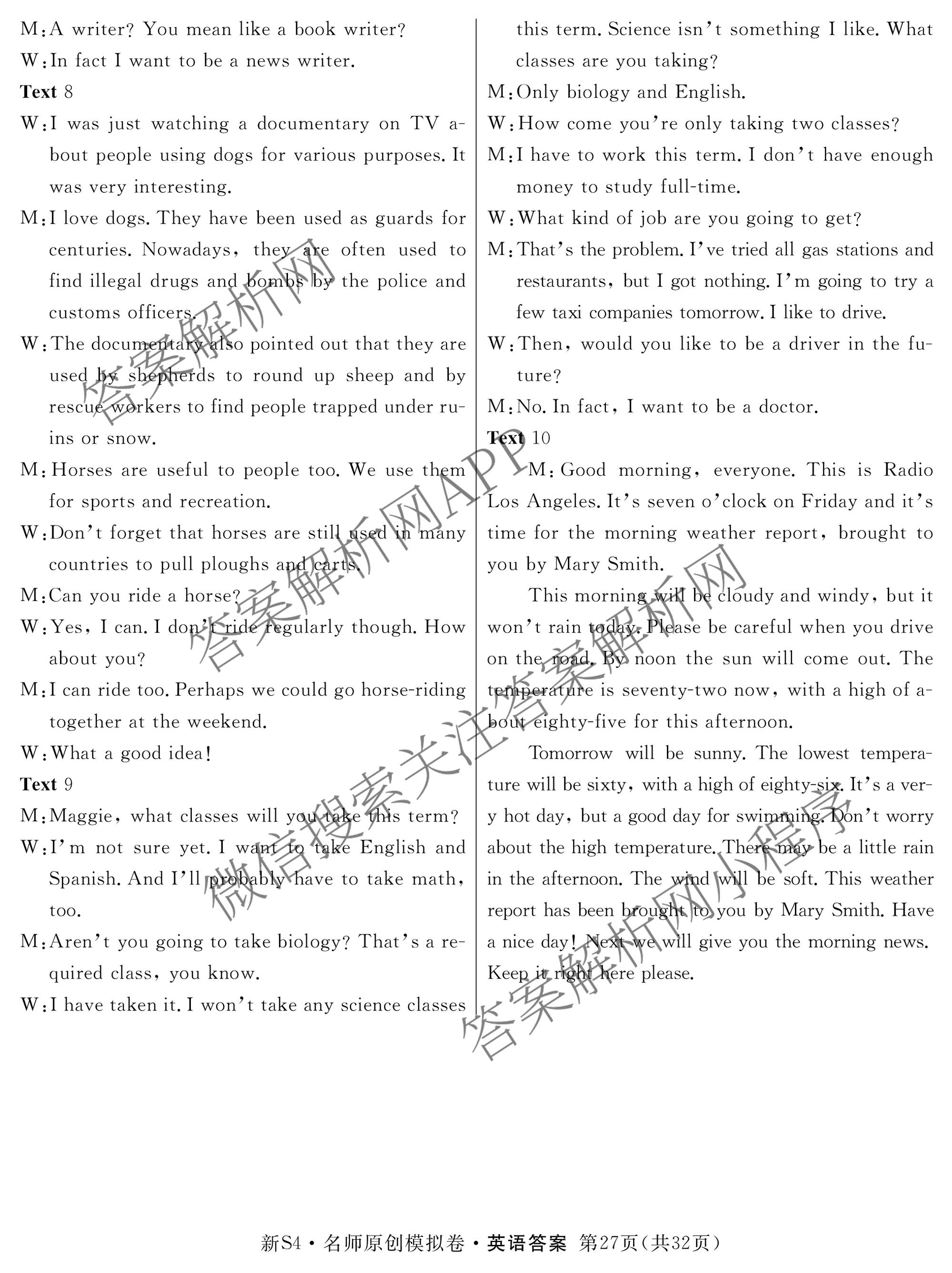 - (高三)2024届总复习·名师原创分科模拟(五)5英语(S4)答案