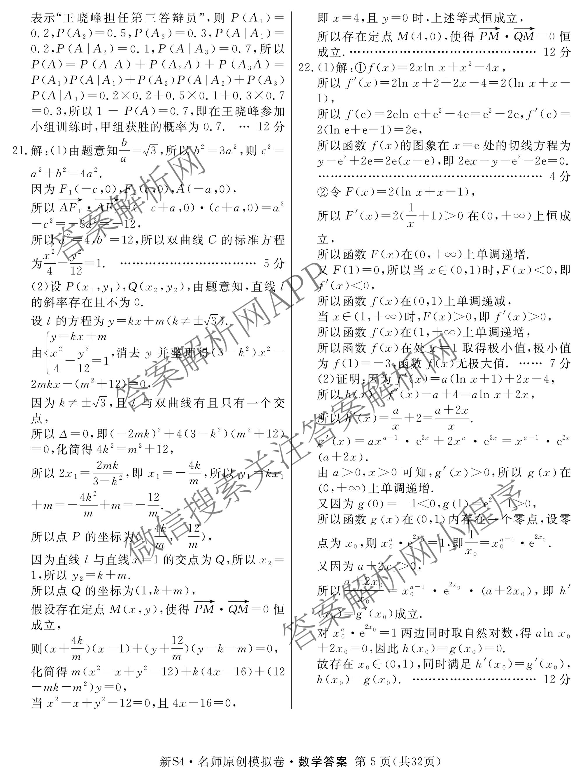 - 2024届高三总复习名师原创模拟 数学(新S4)(七)7答案