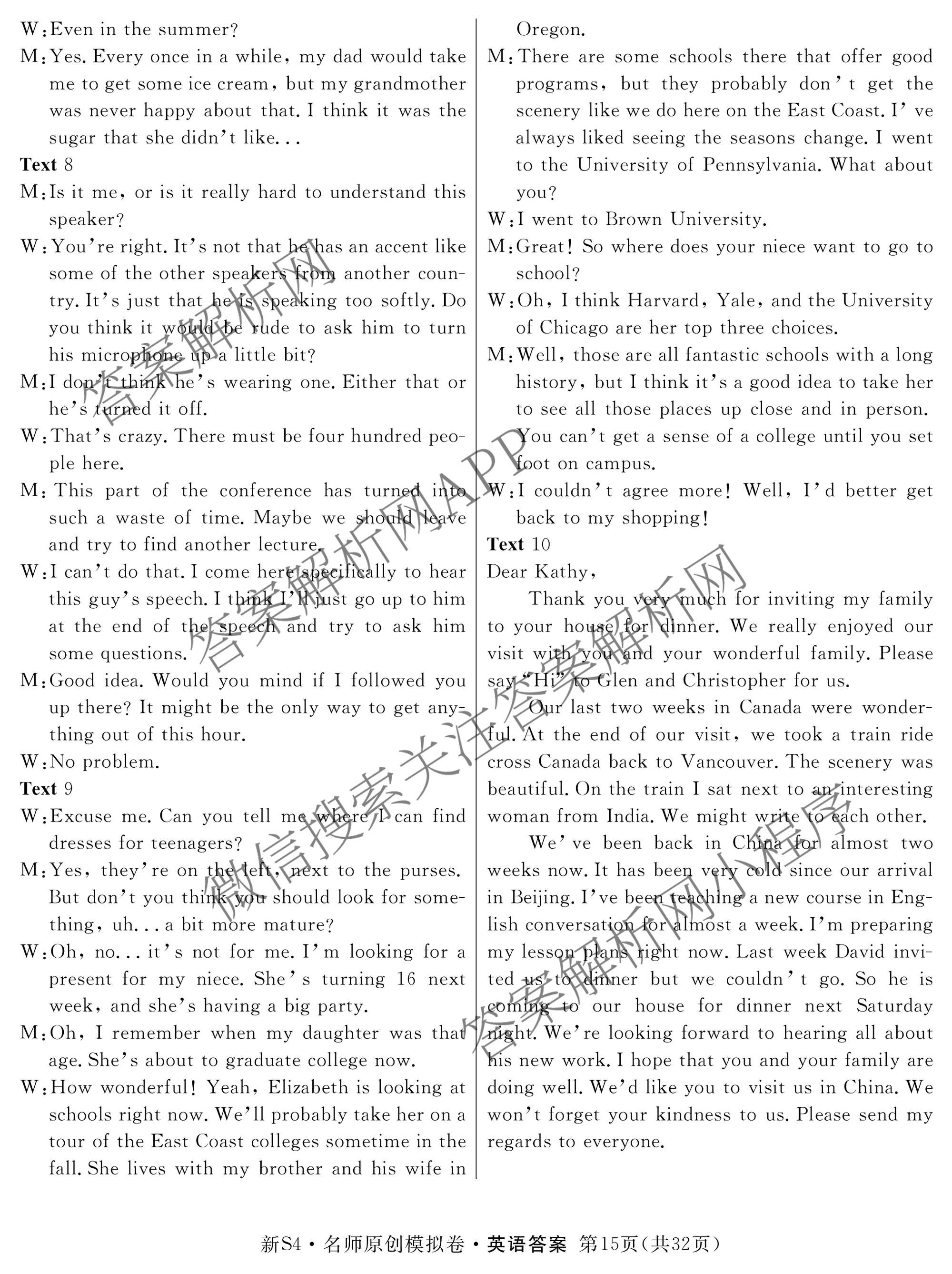 - 2024届[[高三]总复习·名师原创模拟] 英语(S4)(三)3答案