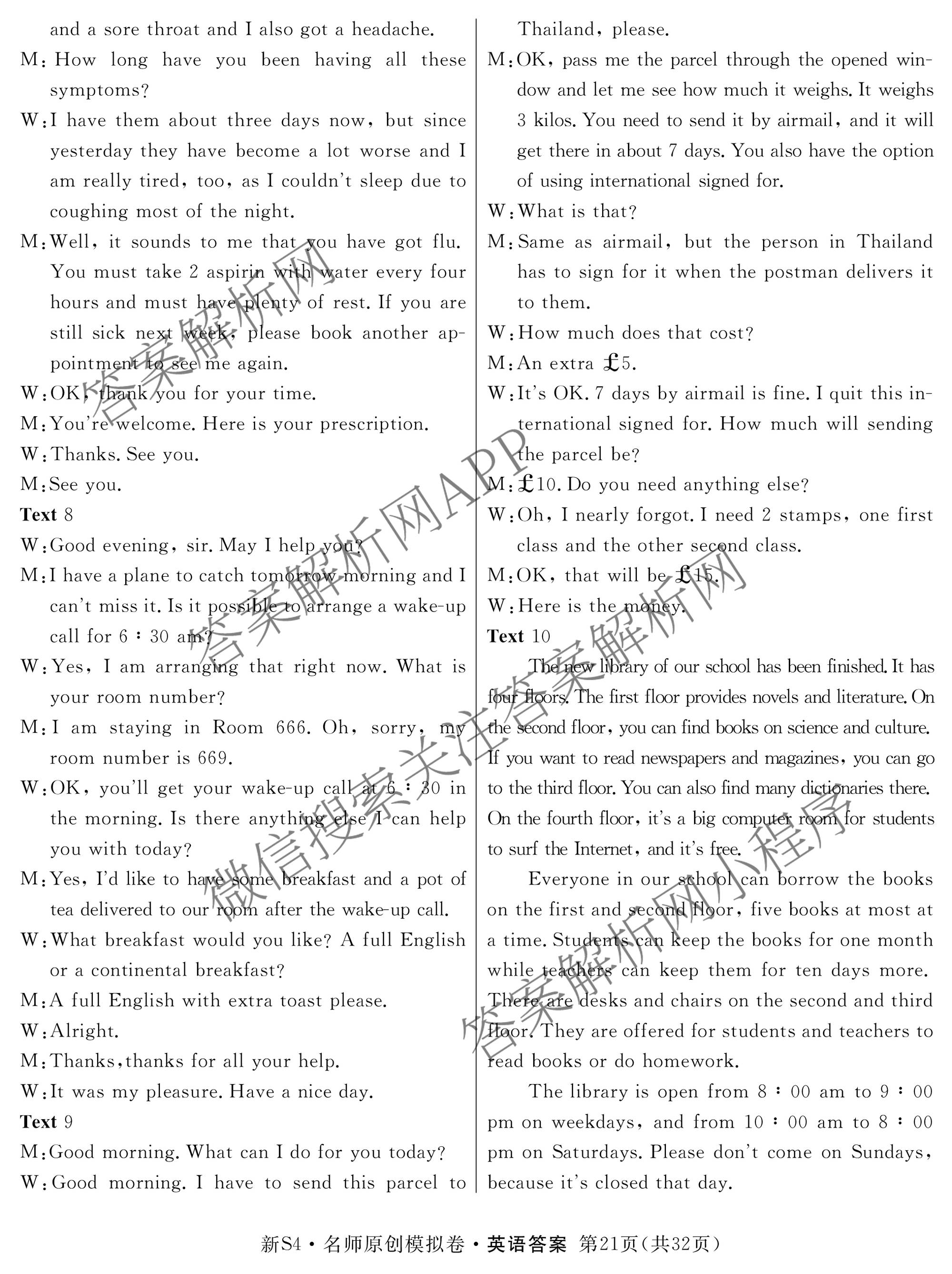 - [高三]2024届总复习·名师原创分科模拟(四)4英语(S4)答案