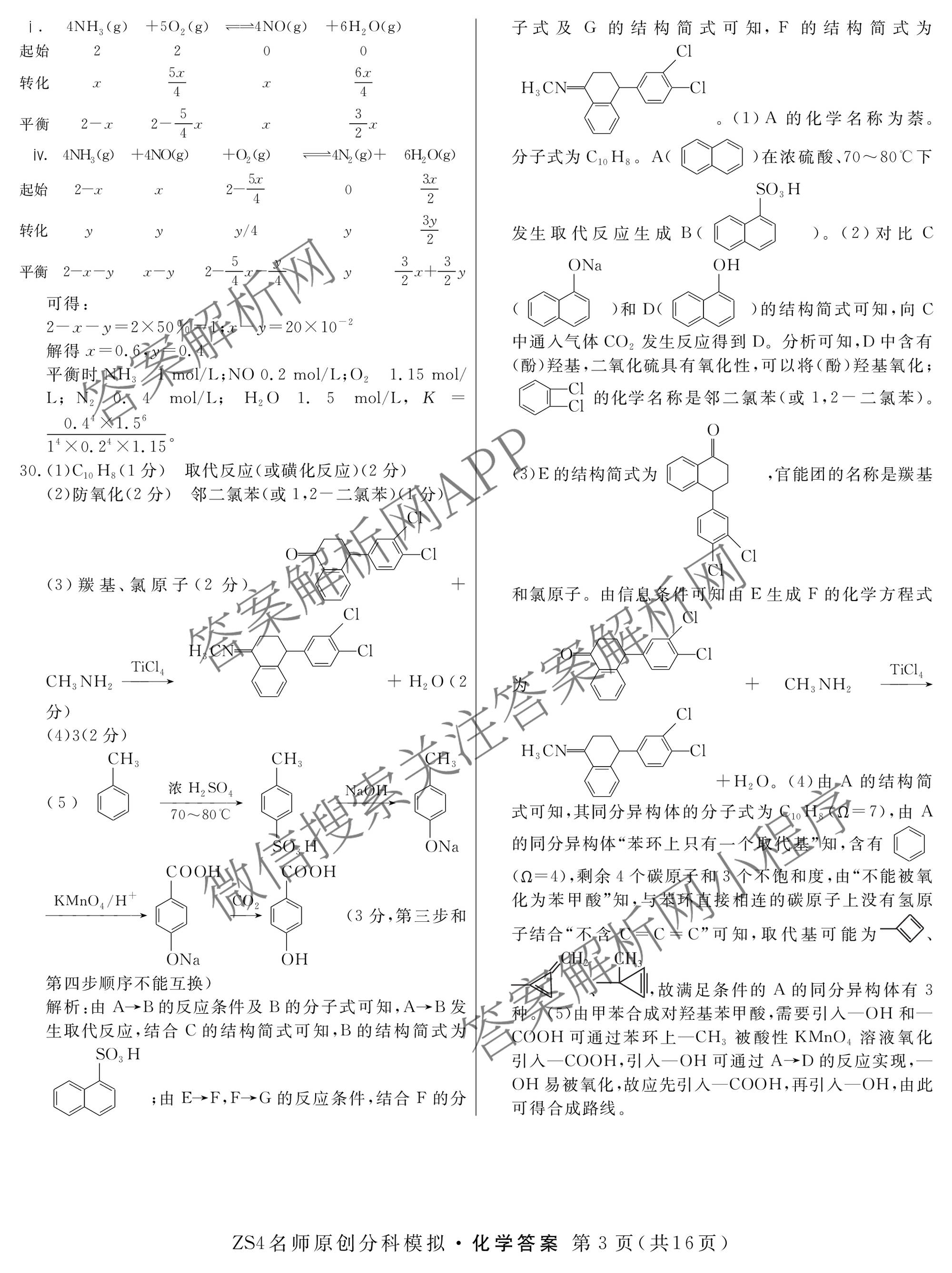 - 2024届[高三]总复习·名师原创分科模拟 化学(ZS4)(一)1答案