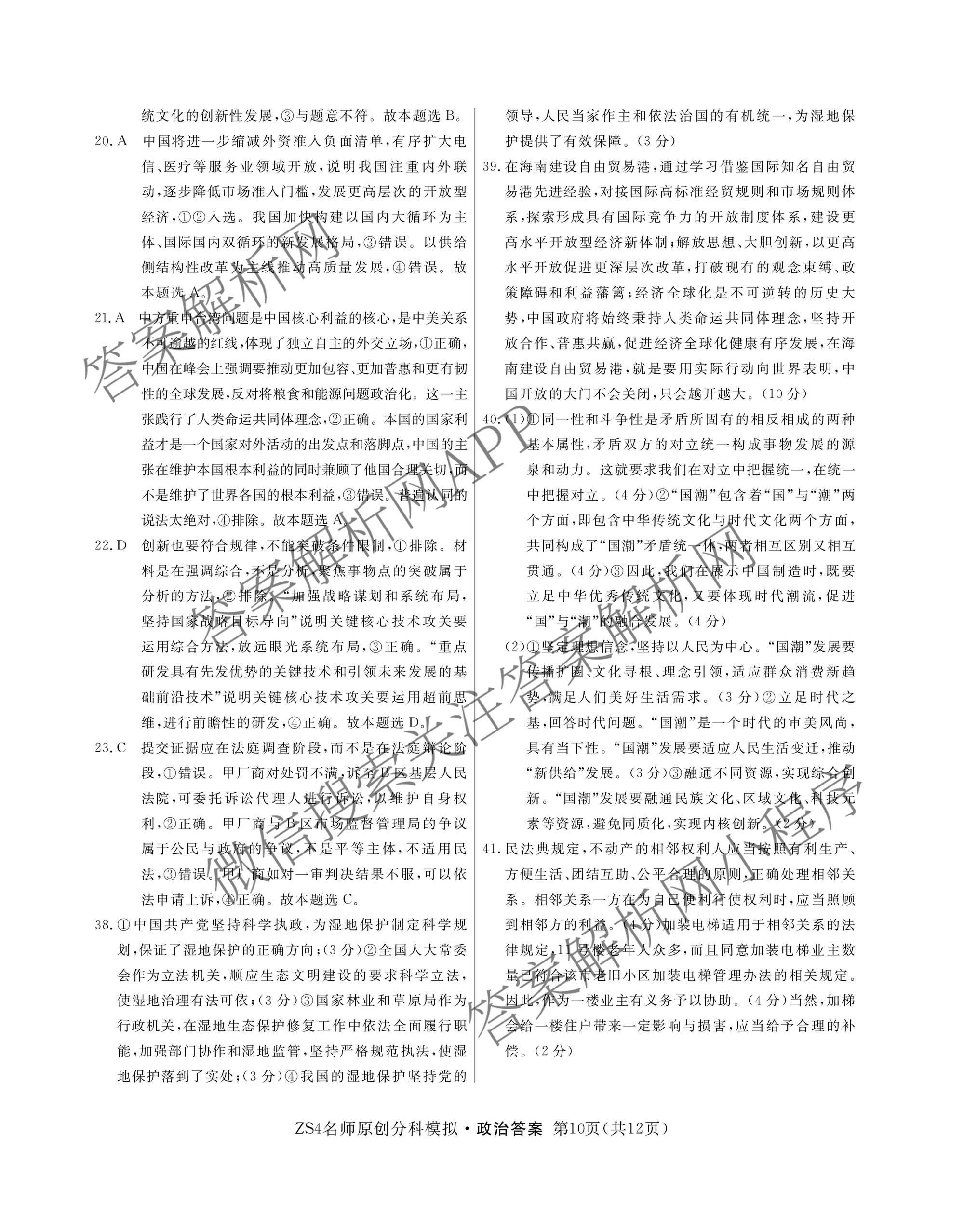 - 2024届高三总复习名师原创分科模拟 政治(ZS4)(五)5答案