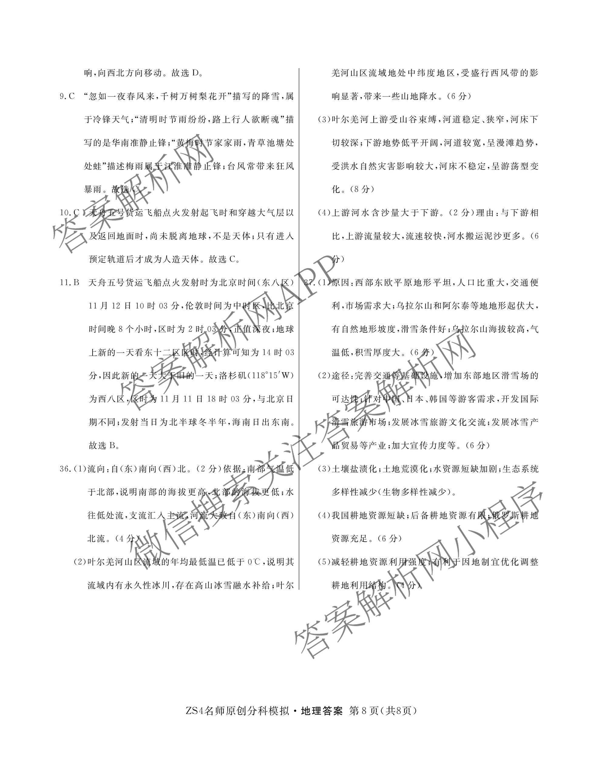 2024届高三总复习·名师原创分科模拟 地理(ZS4)(六)6答案
