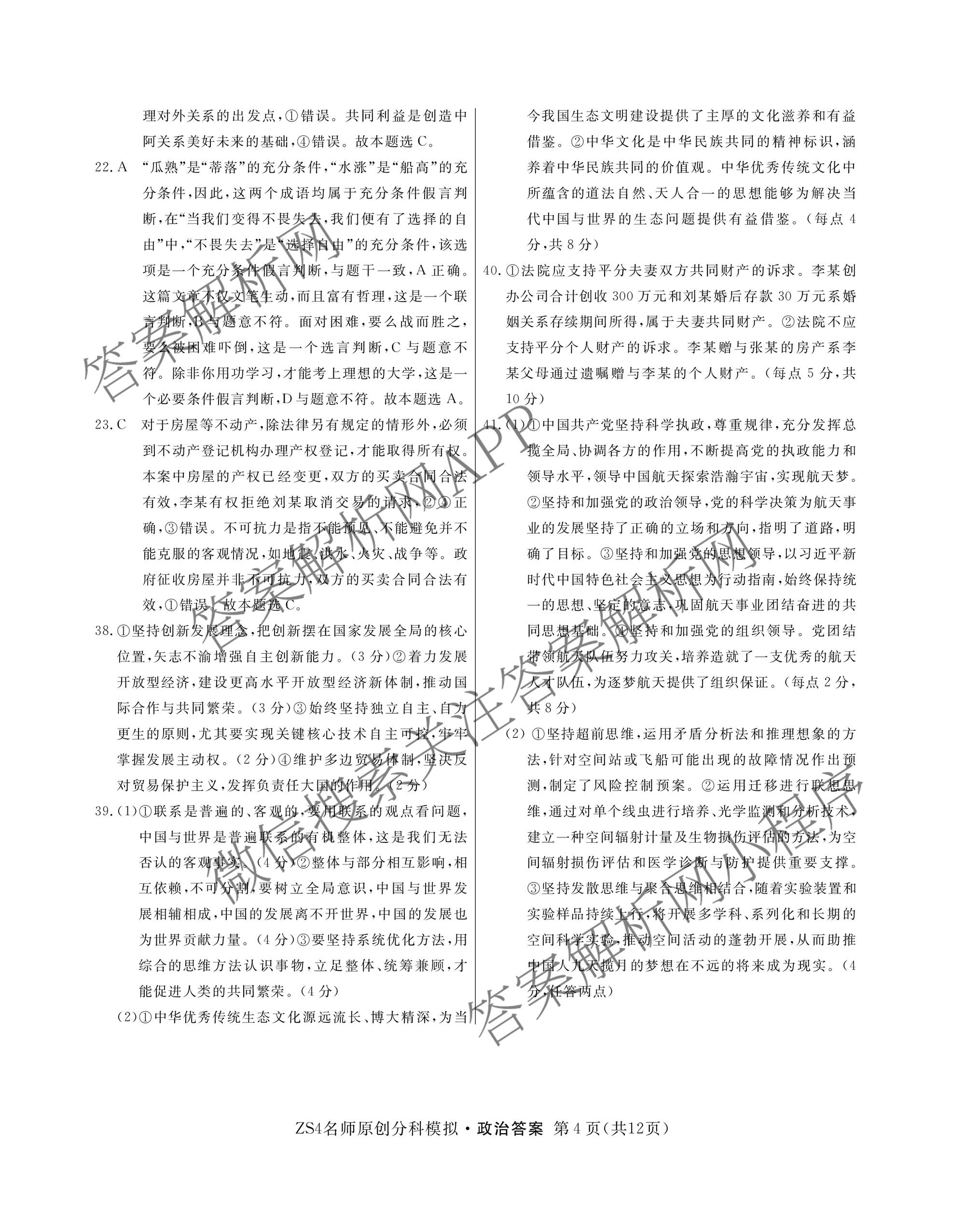 - 2024届[高三]总复习名师原创分科模拟 政治(ZS4)(二)2答案